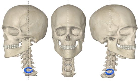 The neck is the part of the body that connects the head to the torso and it plays a significant role in the articulation of the head and spine. The neck is located between the cephalo-thoracic and the cervicothoracic lines and consists of the cranio-vertebral joints, in particular, of the left and right atlantooccipital joints (the superior joint) and the medial and lateral atlantoaxial (that make up the inferior joint). The atlantooccipital joints link the atlas (C1) with the occipital by means of the articular capsule and the anterior and posterior atlantooccipital membranes. The medial atlantoaxial joints are of pivot type, while the lateral atlantoaxial joints are plane. The neck joint allows motion in the three anatomical planes, namely frontal, sagittal and transverse, as shown in Figure 1.