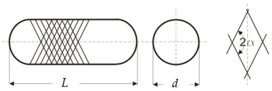 The braiding angle α of the threads is determined by the equation provided in [23]: