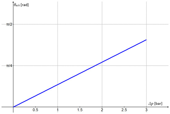 The variation in the equilibrium angle of the joint versus the variable Δp is shown in Figure 10.