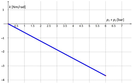 Figure 11 presents the variation in the torsional rigidity versus the sum of pressures (p1 + p2). It can be noted that a high torsional rigidity is obtained for high feed pressures of the two pneumatic muscles. A high rigidity determines an increase in positioning precision.