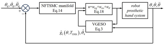 In this section, an ANFTSMC scheme is proposed to address the unmodeled dynamics, hysteresis nonlinearity, and external disturbances in the prosthetic finger system. The control framework of the ANFTSMC scheme [39] is shown in Figure 2.