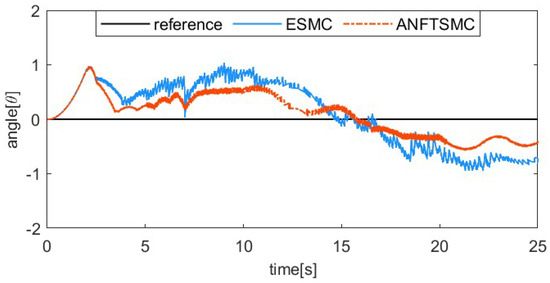 The above expression is in the same form as Formula (15) in the literature [40]. Thus, if , the angular error will converge to a region where with a finite time.