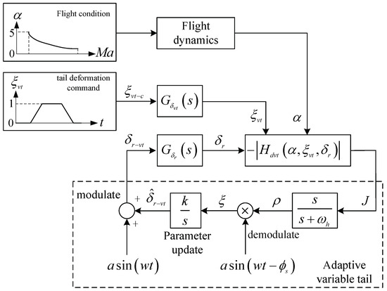 As shown in Figure 9, an adaptive variable tail simulation model is constructed, where and represent the transfer functions of the vertical tail and rudder actuator, respectively. The calculation steps of the AMTHR method can be divided into the following steps: