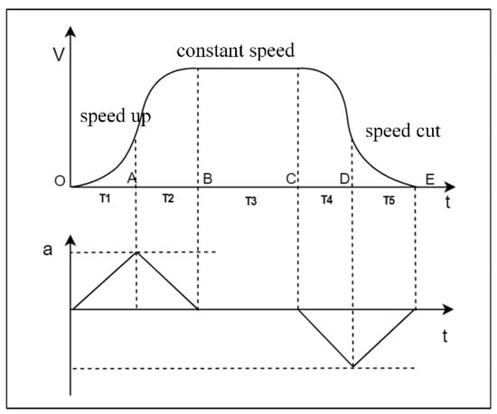 where is initial speed, is acceleration curve running time, is real-time speed of the motor, and and denote displacement of the motor during acceleration and deceleration phases, respectively.