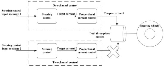 Redundant control of the dual-redundancy three-phase steer-by-wire system is shown in Figure 6.