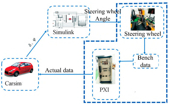 The hardware-in-the-loop test of the dual-redundancy SBW system was carried out using the driving platform shown in Figure 24, simulating various conditions encountered by a vehicle during normal driving. The experimental parameters are shown in Table 3 and Table 4.