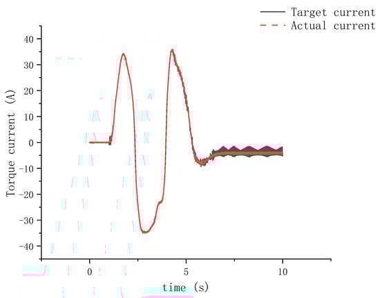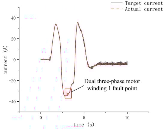 Torque current output of dual three-phase motors during hardware-in-the-loop experiment using test rig shown in Figure 24.