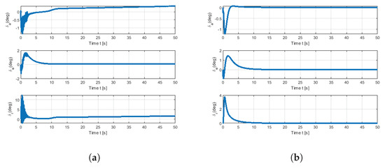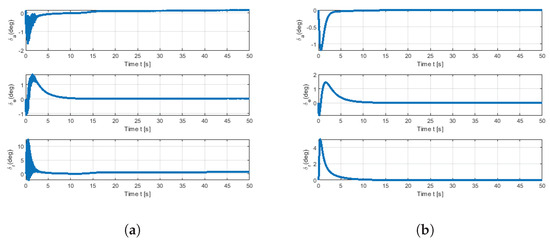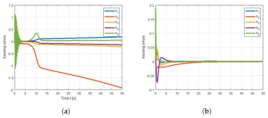 Here, we would like to emphasize that the structure of the proposed scheme clearly limits adaptive parameter oscillations (as illustrated in Figure 14) and results in a reduction of control input oscillations (as illustrated in Figure 15b); therefore, the error dynamics of the modified MRAC (as illustrated in Figure 12b) do not encapsulate any of these oscillations.