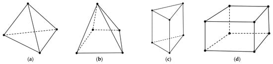 3D fluid FCBI unit. (a) Four nodes; (b) five nodes; (c) six nodes; (d) eight nodes.