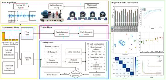 With the development of the manufacturing sector, modern intelligent mechanical equipment demands greater reliability and stability for equipment components [1,2,3]. Bearings, as essential support elements for mechanical rotating parts, play a critical role in reducing friction and facilitating load transmission. The failure of these components can result in significant safety risks and financial repercussions [4]. Consequently, the precise diagnosis of bearing conditions is imperative for ensuring the optimal performance of rotating machinery.