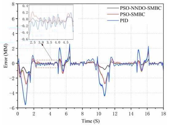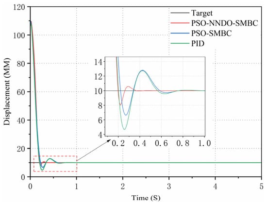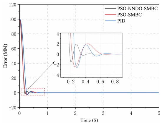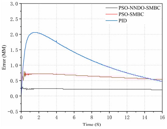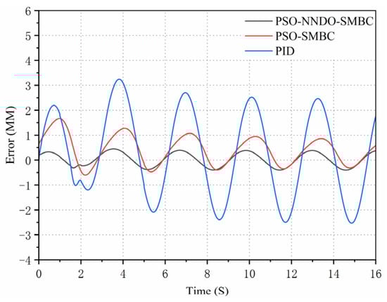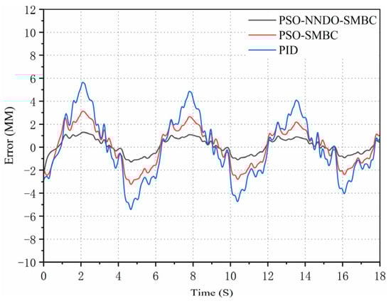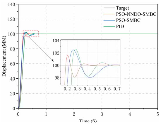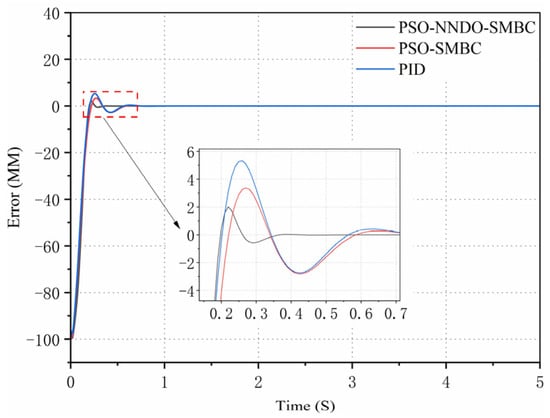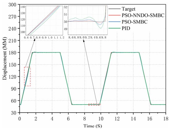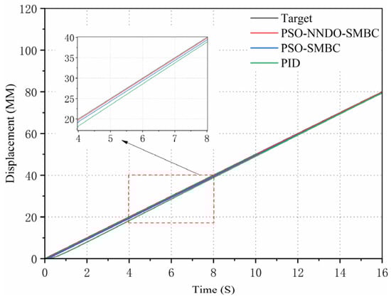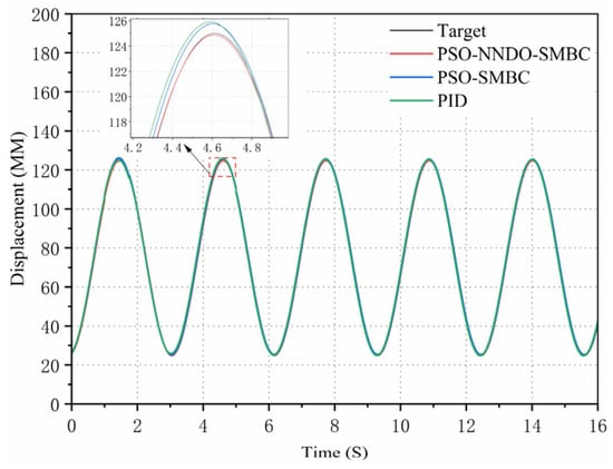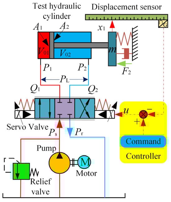 The PID controller is common in practical engineering fields attributable to its simple structure, easy implementation, and convenient control parameter adjustment. As the electro-hydraulic servo system surges, it becomes steadily weighty to better its control performance []. The traditional PID controller not only fails to approach and compensate for the uncertainty of control parameters online, but it also cannot obtain satisfactory results in the case of large, nonlinear parameter uncertainty and unmodeled dynamics. To mitigate the influence of parameter uncertainty on the position tracking accuracy of the hydraulic system, scholars have conducted a multitude of studies and put forward a multitude of cutting-edge nonlinear control methods, such as neural network control [], backstepping control [], sliding mode control [], and adaptive robust control []. Through the implementation of these non-linear control methods, we can ultimately deal well with the uncertain nonlinear problem of the electro-hydraulic servo system under certain conditions.