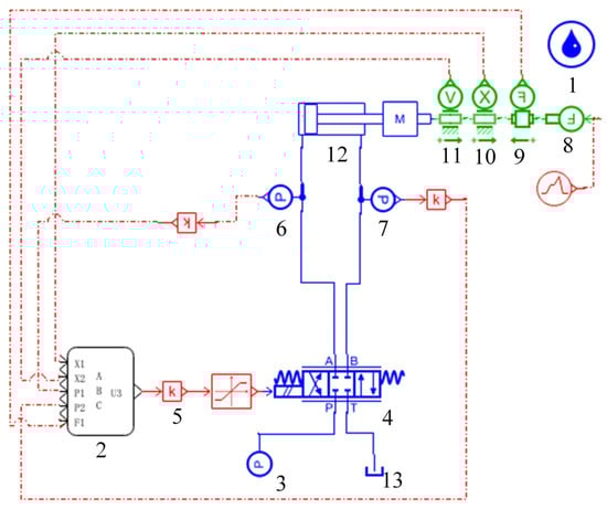 Combined with the research in the literature [], the kinematics model of the electro-hydraulic servo system can be established as follows: