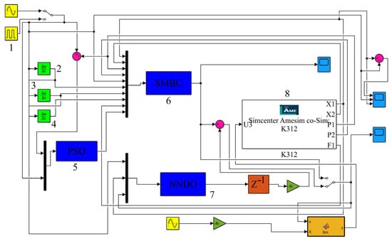 To reinforce the robustness of the system to internal parameter changes, unmodeled items, and external disturbances, sliding mode control can be employed to control uncertain nonlinear systems. Since the sliding mode control law is discontinuous, it is actually a nonlinear control. Moreover, the structure of the system will change purposefully with the current state of the system, rather than invariably. More importantly, the state of the system will move in line with the set sliding mode trajectory, which is referred to as variable structure control []. Since the choice of sliding mode is autonomous in relation to the internal parameters and external perturbations of the system, sliding mode control has strong robustness in the face of parameter changes and external disturbances, with fast response speed, a simple algorithm, easy physical implementation, and the elimination of the necessity for online system identification. Consequently, it has garnered significant attention from domestic and international scholars. In practical engineering application, the disadvantages of the control algorithm are also exposed. The sliding mode surface is a state operating space designed by humans, usually a hyperplane or surface, defined by sliding mode variables equal to zero. When the system state trajectory reaches the sliding mode surface, it will repeatedly shuttle to both sides of the sliding mode surface. Aside from that, it is hard to move along the sliding mode surface to the equilibrium position, which makes it challenging to analyze the system stability and to meet the arrival conditions. Moreover, the control link causes buffeting problems []. To lessen the influence of unknown disturbance on the control performance of the hydraulic servo system, a sliding mode variable structure control grounded in space vector regulation technology was recommended in the literature []. As validated by the experimental results, the designed controller could not only minimize the influence of large system disturbance, but could also reinforce the control accuracy and response effect of the system. In the literature [], an adaptive sliding mode controller was designed for the electro-hydraulic servo system when the internal nonlinear parameters remain unascertained. A new Lyapunov function was designed on that account. Additionally, a convergent and stable adaptive control scheme was put forward, which could compensate for the uncertain nonlinear or uncertain parameters of the system, especially for the nonlinear uncertain parameters stemming from various original control quantities. Despite demonstrating robust resilience against the intricate disturbance arising from internal parameter variations and external disturbances, the performance of the aforementioned research findings are still constrained by certain conditions.