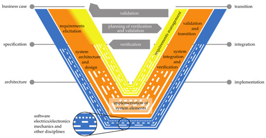 The traditional V-Model can be too rigid and time-consuming for modern agile engineering cycles (sequential process with late-stage verification phase). As an improvement, the “Incremental V-Model” is introduced [42]. By overlapping development phases, verification time can be reduced by 50% and quality improved by 45%. In addition, the “Slicing V-Model” [43] is proposed to improve traceability and robustness of requirement management by slicing development into smaller tasks. Further improvements are presented in the form of the “Digital Variant Design V-Model for Rapid Product Development” [44] and by “Expanding the Classical V-Model for the Development of Complex Systems Incorporating AI” [45].