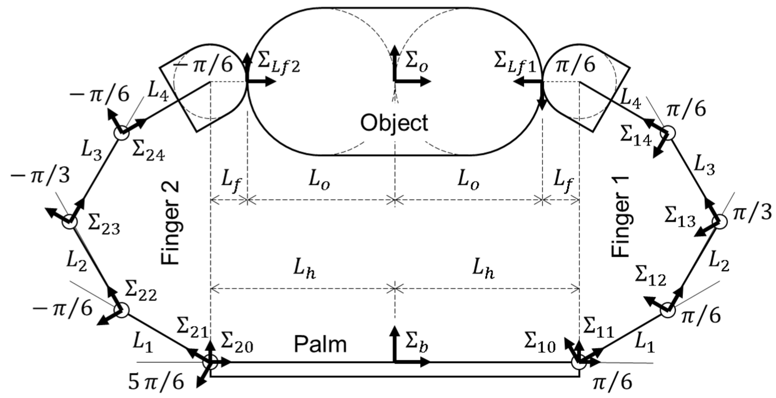 7.1. Grasp by Two Fingers Composed of Four Joints