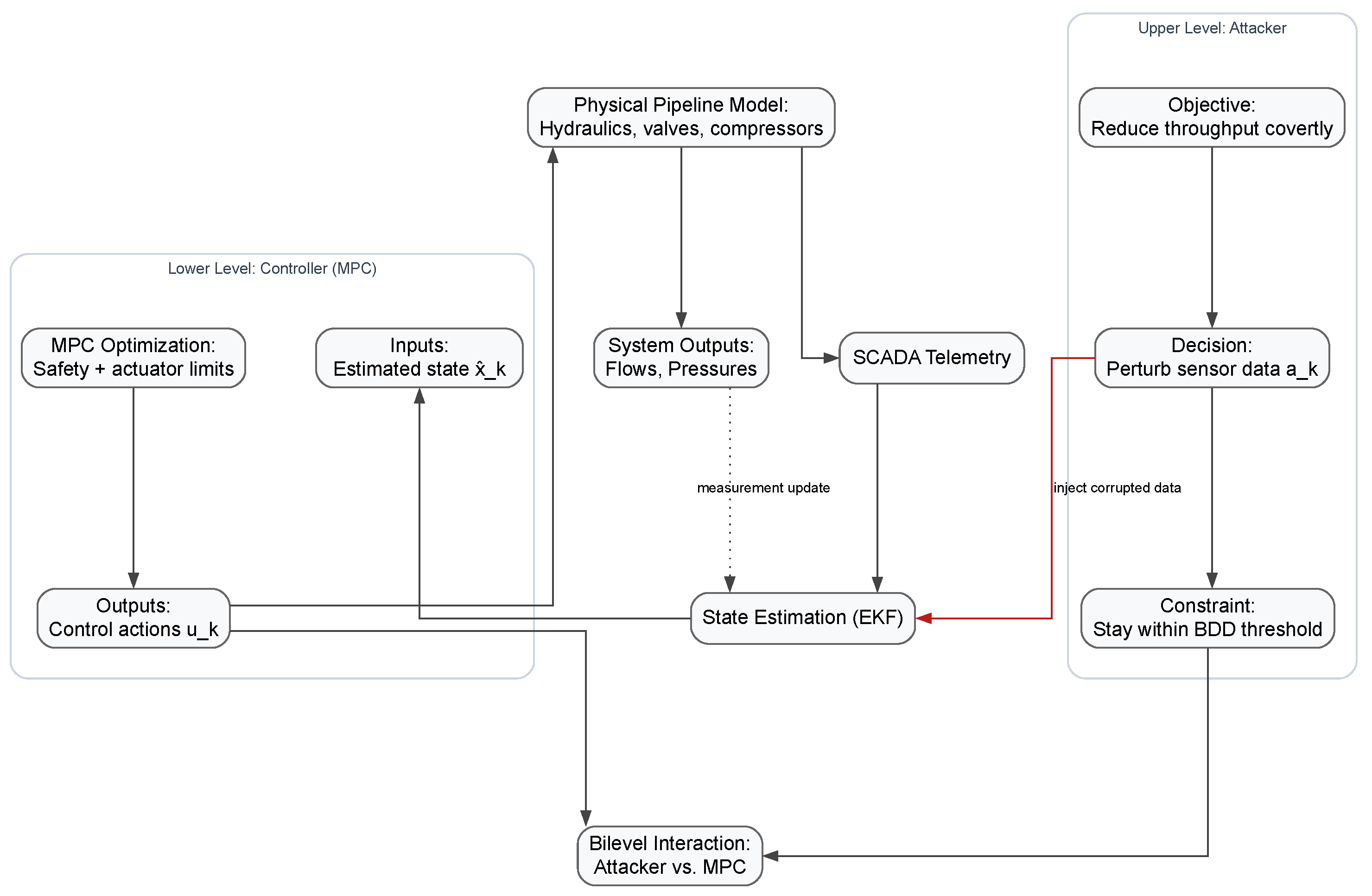 APA StyleKatale, T. S., Gao, L., Zhang, Y., & Senouci, A. (2025). A Bilevel Optimization Framework for Adversarial Control of Gas Pipeline Operations. Actuators, 14(10), 480. https://doi.org/10.3390/act14100480