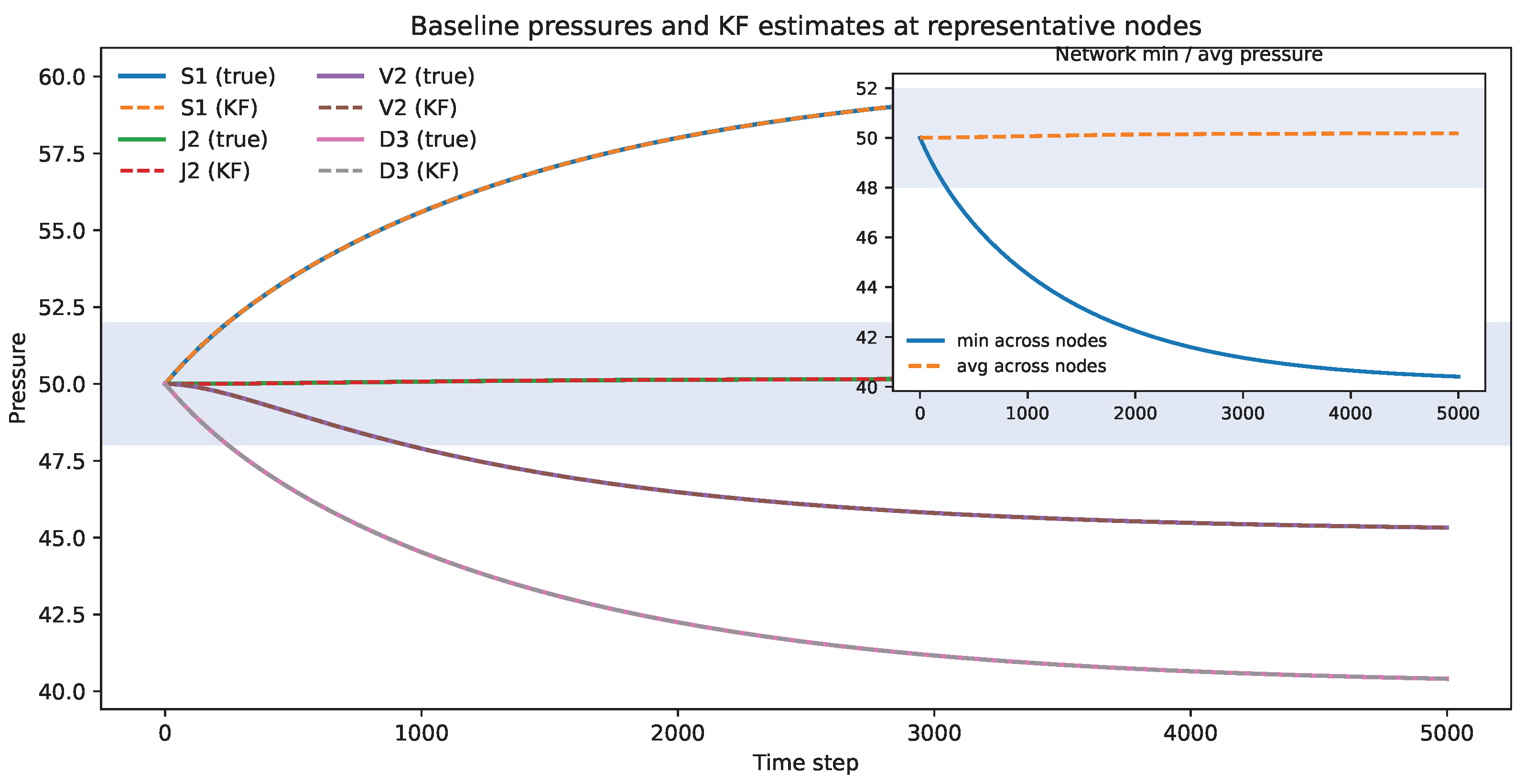 - Liu, Y.; Guo, Q.; Xie, W.; Wang, S. Enhanced Leak Detection and Localization in Liquid Pipelines Using an Improved Extended Kalman Filter. Processes 2025, 13, 1447. [Google Scholar] [CrossRef]