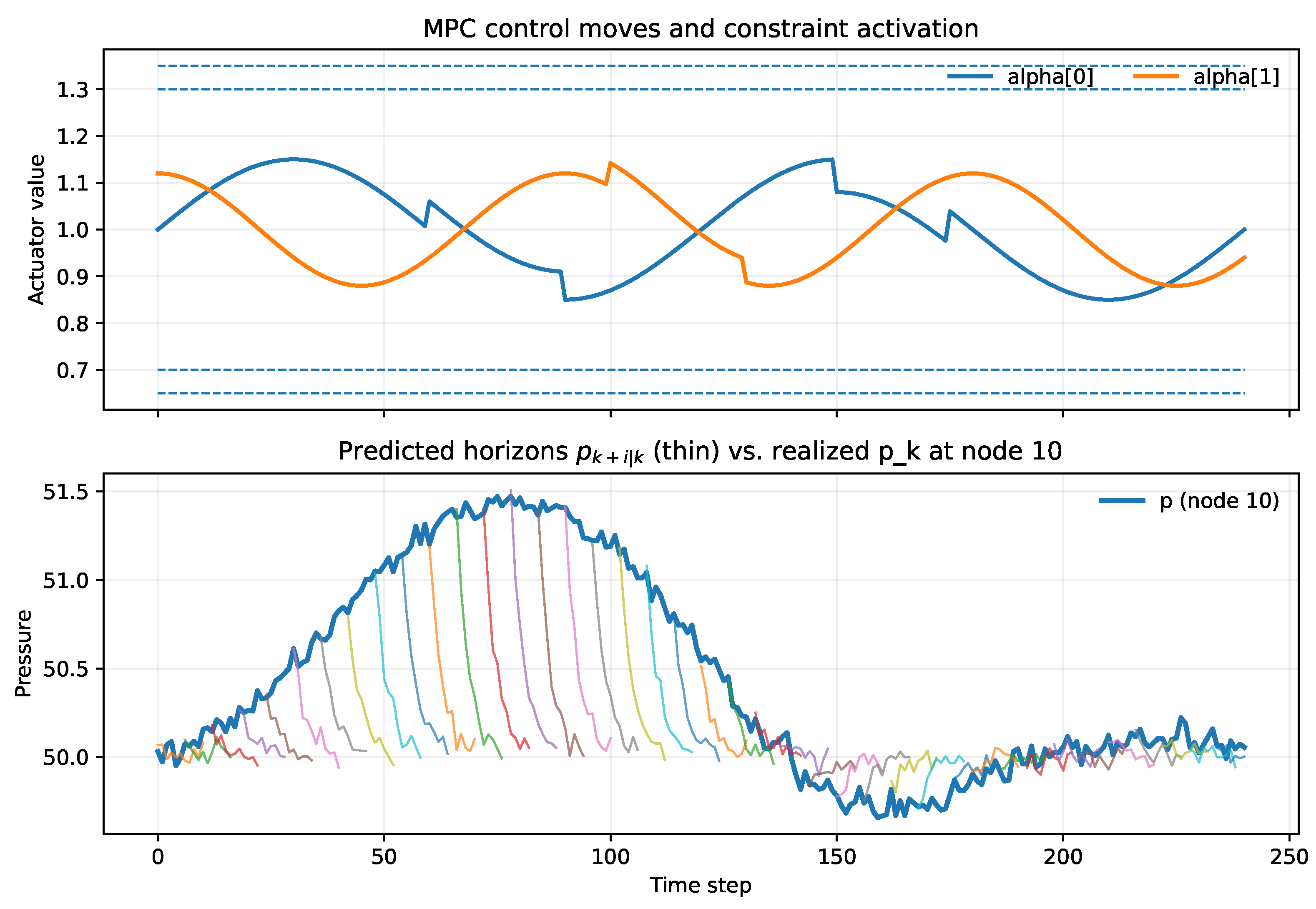 - Ghilardi, L.M.P.; Naik, S.; Martelli, E.; Casella, F.; Biegler, L.T. Economic Nonlinear Model Predictive Control for cyclic gas pipeline operation. Comput. Chem. Eng. 2025, 196, 109039. [Google Scholar] [CrossRef]