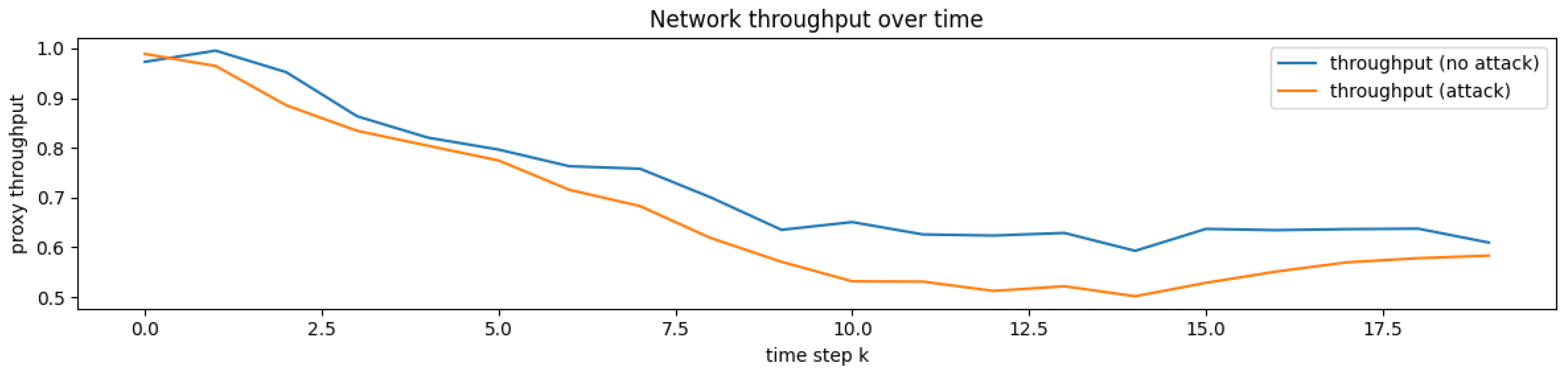 Case | Baseline Mean [Units/s] | Attacked Mean [Units/s] | Mean Drop [%] | Peak Drop [%] | Median Drop [%] | Cumulative Loss [Area] |