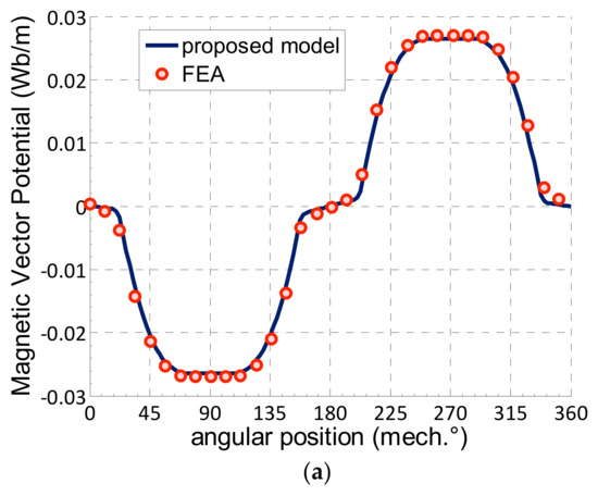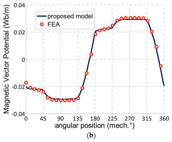The constant terms A 0 i and A k i are coefficients to be determined. For this purpose, condition (16) is considered. The air-gap magnetic vector potential is expanded into a Fourier series over the i t h rotor slot opening at r   =   R 2 . It is obtained for the mean value as