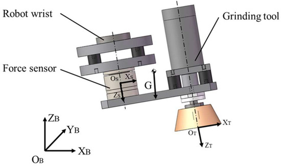 Assuming the gravity of the grinding tool is G and its gravity in the base coordinate system is , the component of the grinding tool’s gravity in the sensor coordinate system can be obtained as follows: