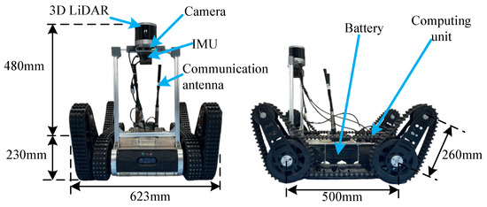 Our subject is a differential tracked robot named Climber (Figure 1). Each side is driven by a brushless DC motor. Motor drivers receive speed commands directly from the computing unit via the CAN bus, which drives the motors to rotate. The power is then transmitted to the tracks through a reduction gear mechanism. The LiDAR sensor is a Robosence Helios 32, the IMU sensor is a WIT 9073, the computing unit is an NVIDIA Orin, and the CPU is an ARM Cortex-A78, with 64 GB of memory, running Ubuntu and the ROS1 system.