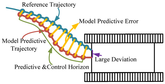 The trajectory tracking problem is described as shown in Figure 2: Given a predefined desired trajectory, design an MPC tracking control strategy to predict the robot’s trajectory within the predictive control horizon. Compute the optimal control commands for the robot such that its actual position closely approximates the reference position while ensuring that the tracking error converges to zero within a finite time or remains within a small tolerance range.