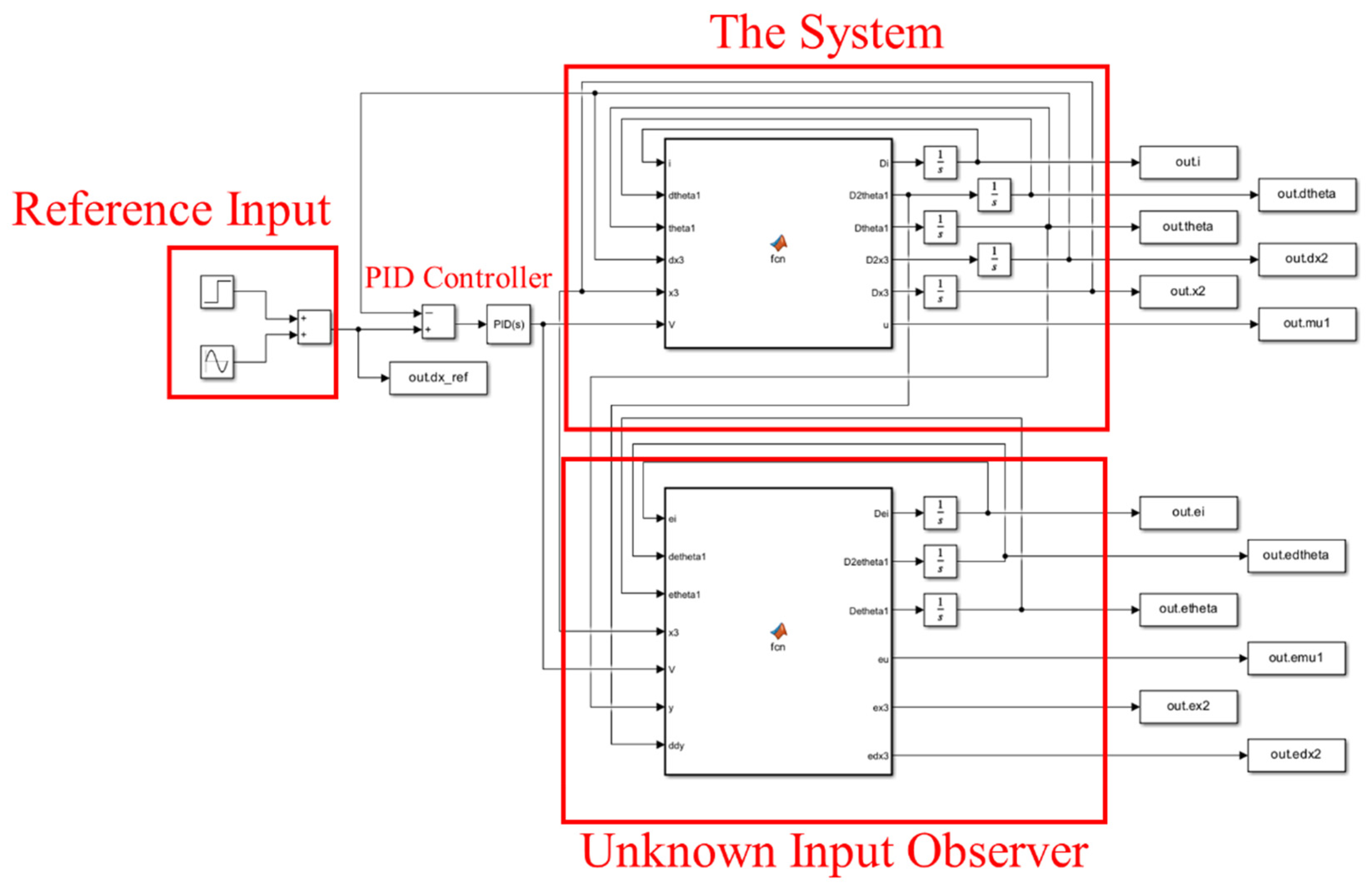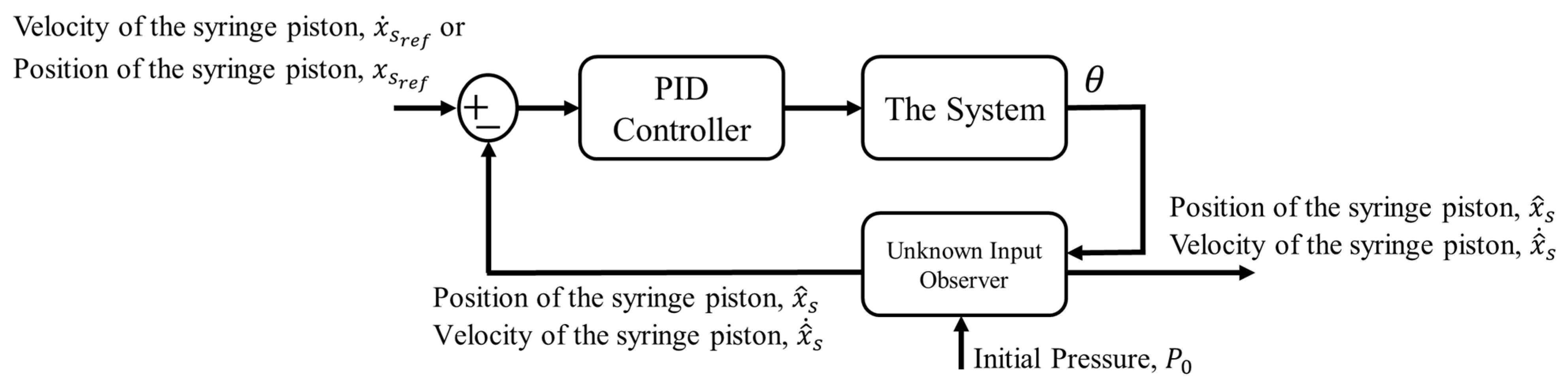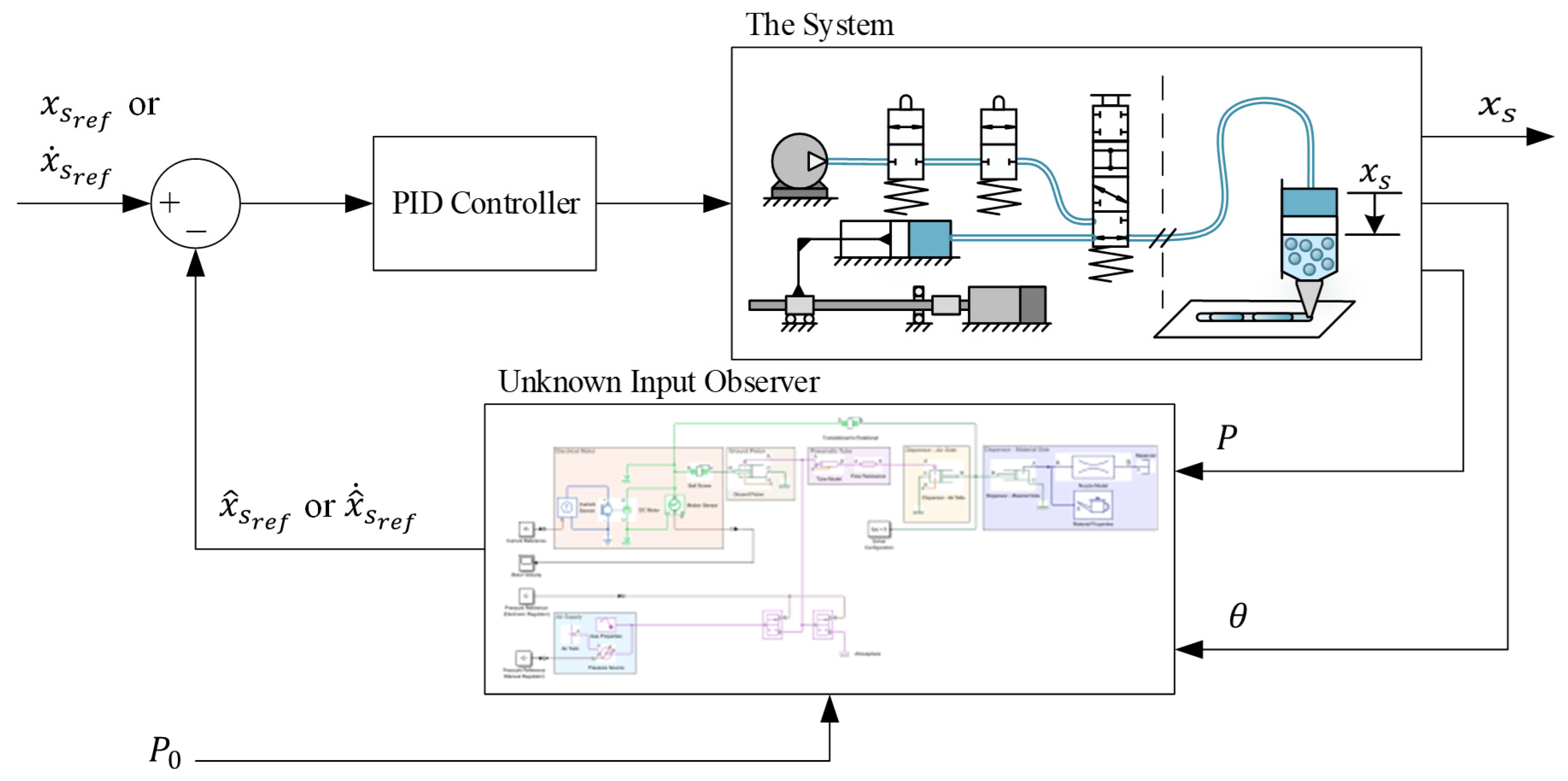 - Observer-Based State Estimation: An unknown input observer (UIO) is implemented to estimate unmeasurable internal states such as chamber pressure or nozzle force. These estimated variables are essential for real-time feedback and control in systems where direct sensing is infeasible.