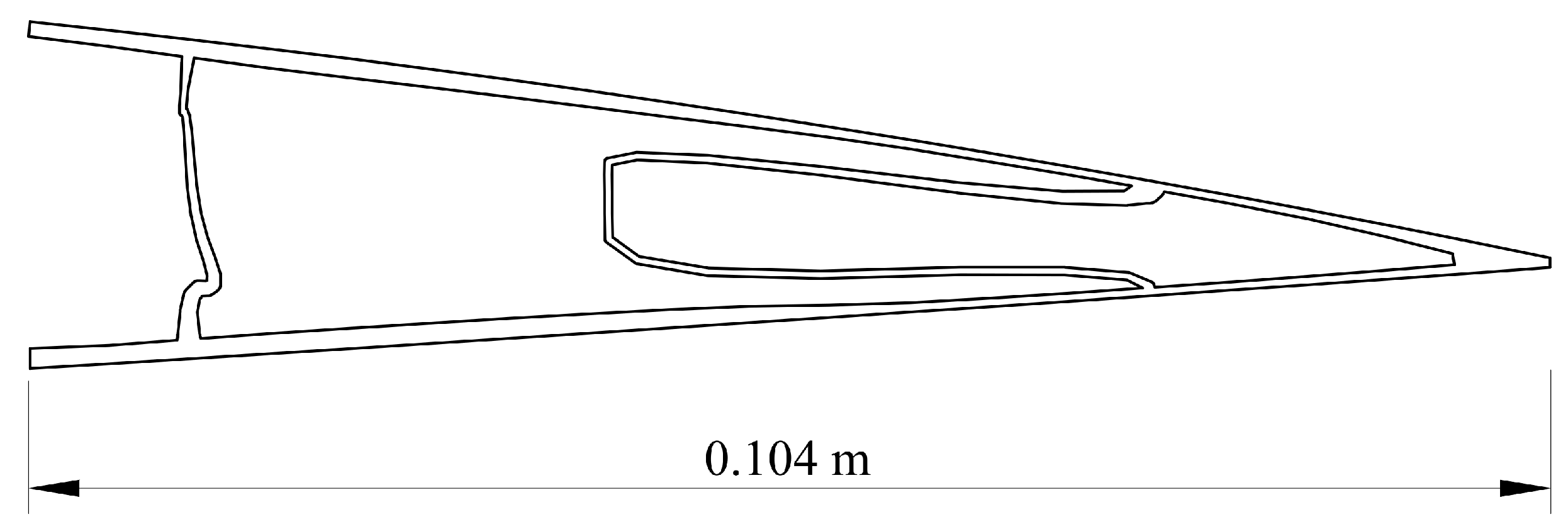 Figure 3. The entire inner space of the trailing edge cannot be used, as the available vertical space gradually decreases toward the rear section, leaving insufficient room to accommodate the support structure. Therefore, the