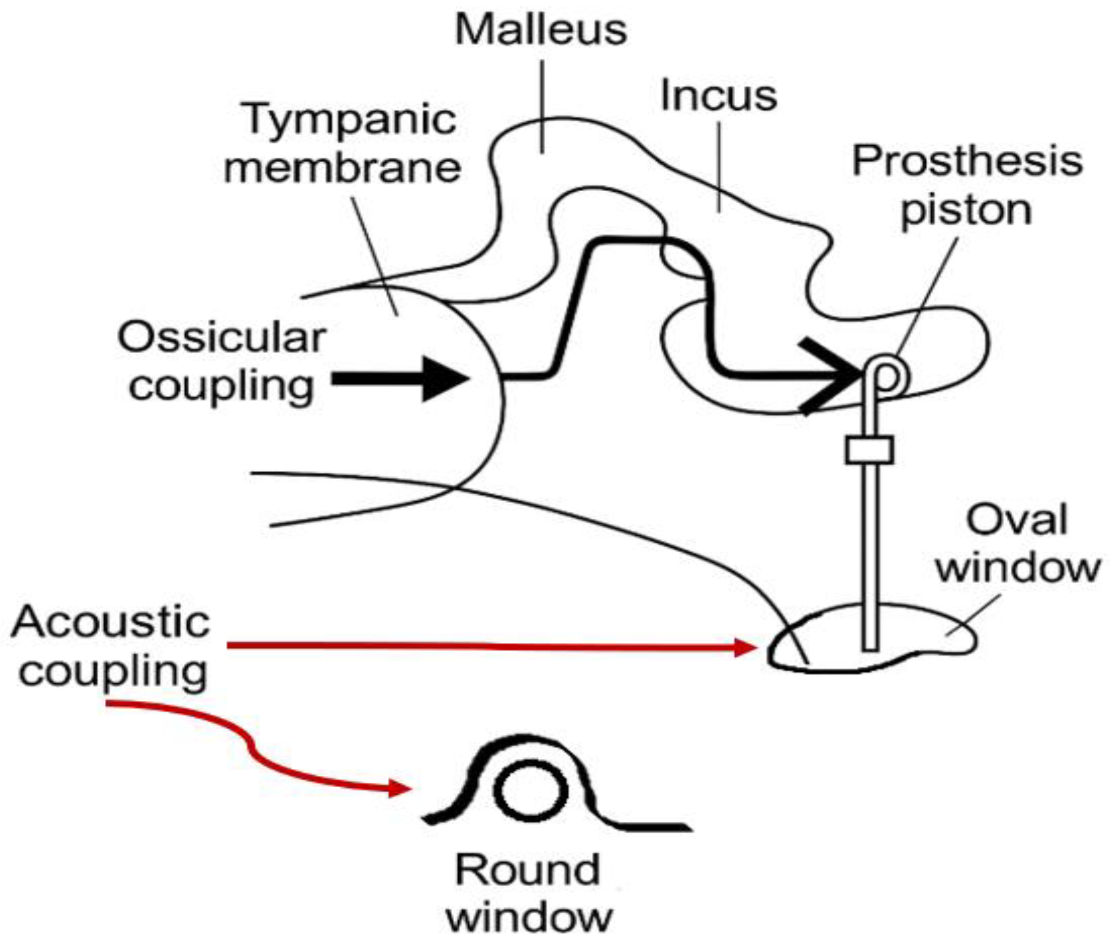 - Huber, A.M.; Ma, F.; Felix, H.; Linder, T. Stapes Prosthesis Attachment: The Effect of Crimping on Sound Transfer in Otosclerosis Surgery. Laryngoscope 2003, 113, 853–858. [Google Scholar] [CrossRef] [PubMed]