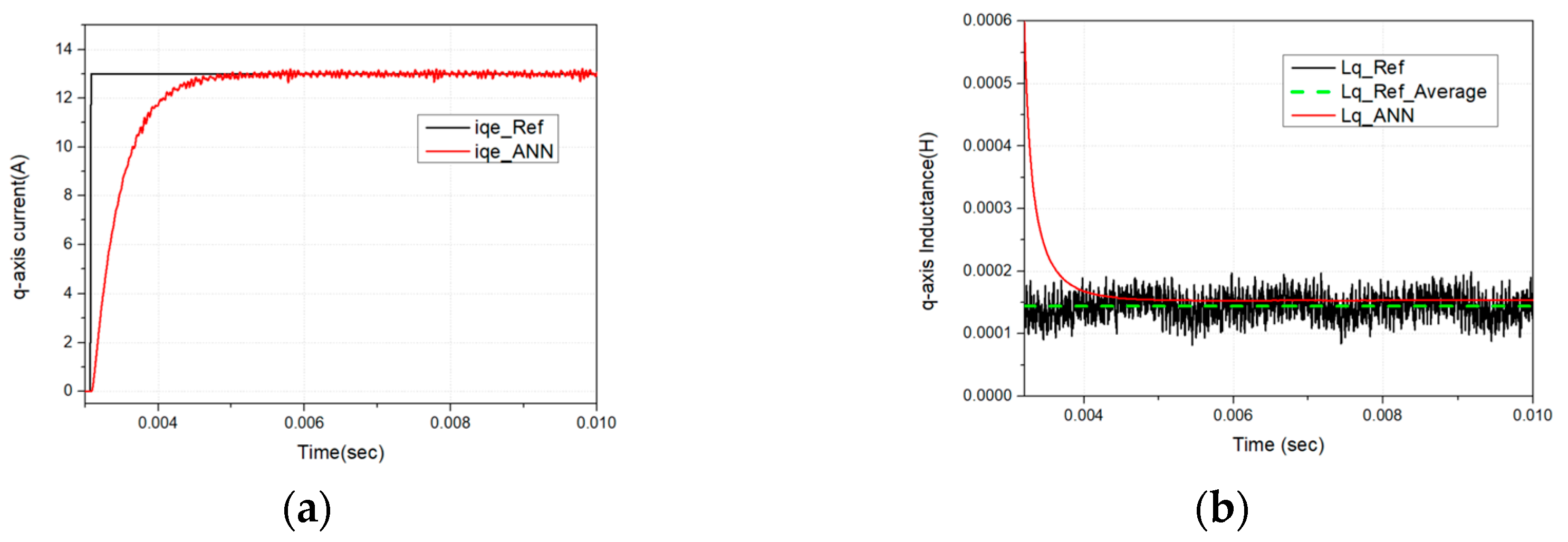 21]. In the model-based approach, when the mathematical model is linear, the estimation error is small, enabling high-accuracy results. However, PMSM systems exhibit nonlinearities, making it difficult to represent them with a simplified mathematical model, which significantly reduces estimation accuracy. Furthermore, due to the nonlinear relationships among system variables, developing a model-based estimation scheme for PMSM control is highly complex and often impractical. In contrast, data-driven approaches estimate parameters by utilizing both system input and output data. These methods also achieve high accuracy for linear systems; however, when applied to nonlinear systems, the complexity increases, resulting in high-dimensional, multivariable datasets that require extensive analysis. To address this limitation, an alternative strategy has been proposed in which variables with strong correlations to the target parameters are pre-selected, thereby enabling parameter estimation with significantly reduced data analysis requirements. In this study, a PMSM parameter estimation method based on an artificial neural network (ANN) is proposed [