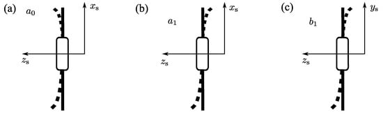 where and are the n-th modal shape of the blade’s bending and torsion, and obtained by mathematical or experimental methods. In this paper, the modal shape functions are derived by the modeling and solution method used in Refs. [30,31], as shown in Equation (A1) in Appendix A.