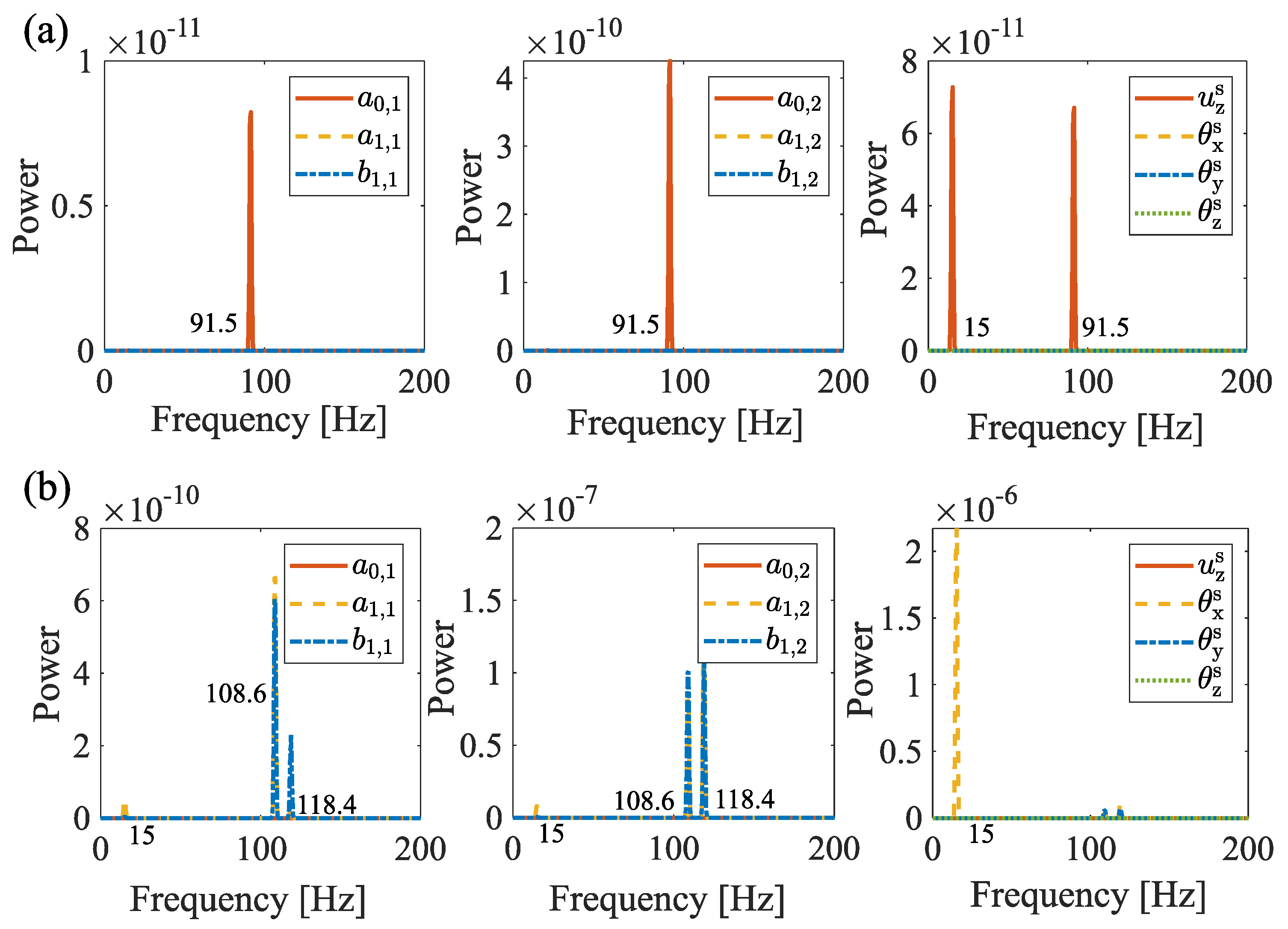 - The response of the considered DOFs depends on the coupling effects as well as their natural frequency under road excitation. For an arbitrary DOF, its amplitude is primarily governed by the DOF whose natural frequency is closest to the excitation frequency within the same group.