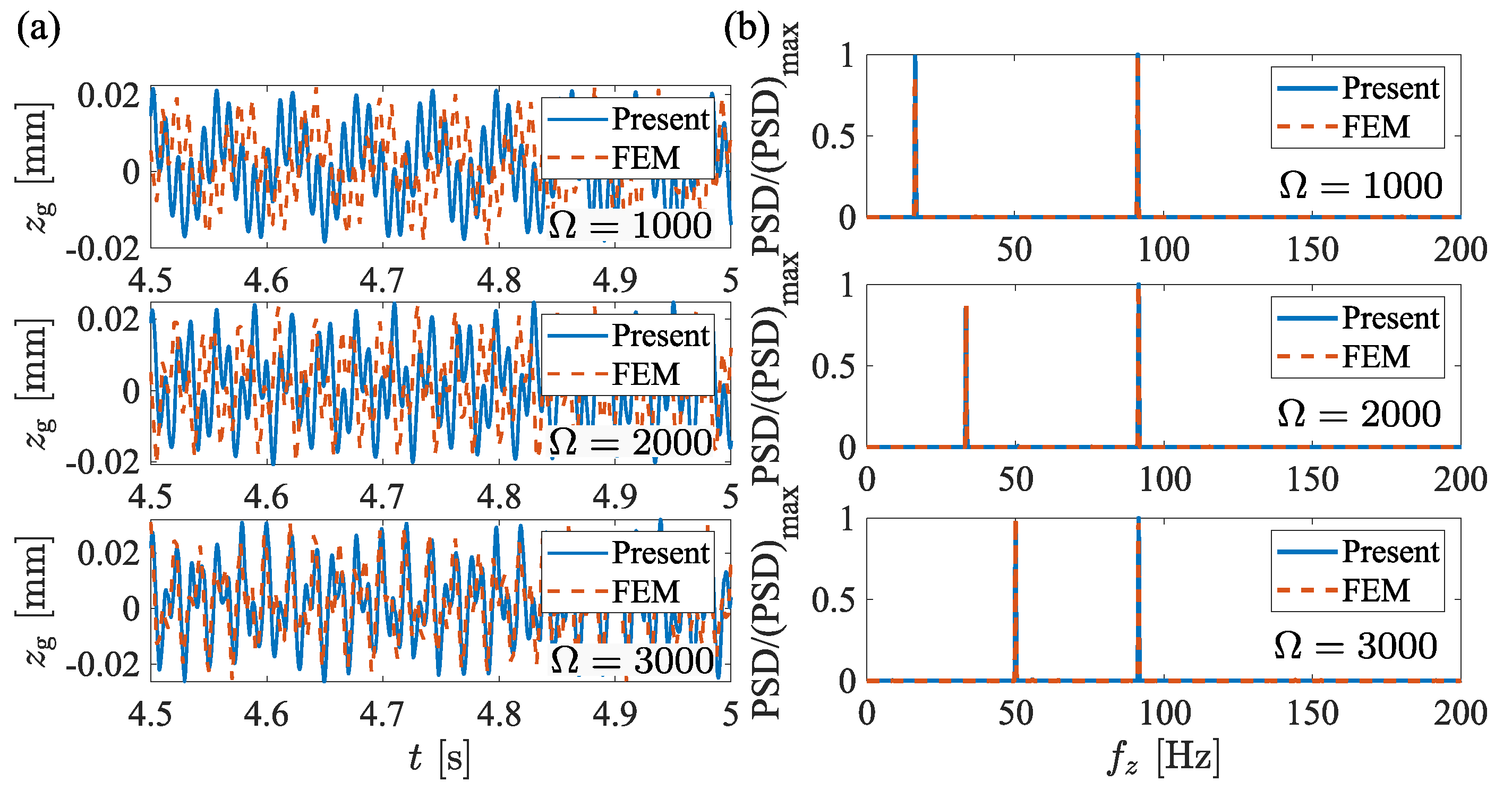 - The proposed methodology demonstrates significant computational efficiency improvements over FEM analysis, particularly which costs merely about 1/70th of the FEM processing time in scenarios requiring extensive iterative computations. This approach exhibits superior practicality for parametric studies of fan systems, such as enabling effective optimization of stiffness and damping characteristics across broad speed ranges.
