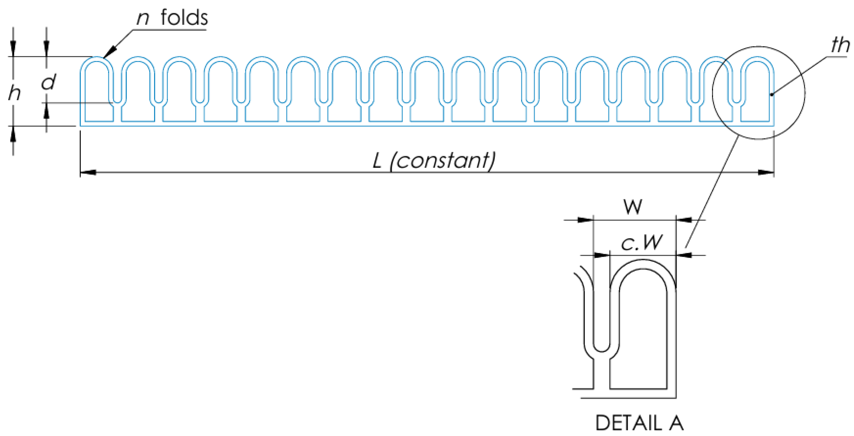 The decision variables, h , c , n , d , and t h are the design parameters that should be adjusted in order to maximize the bending under a specific applied pressure.