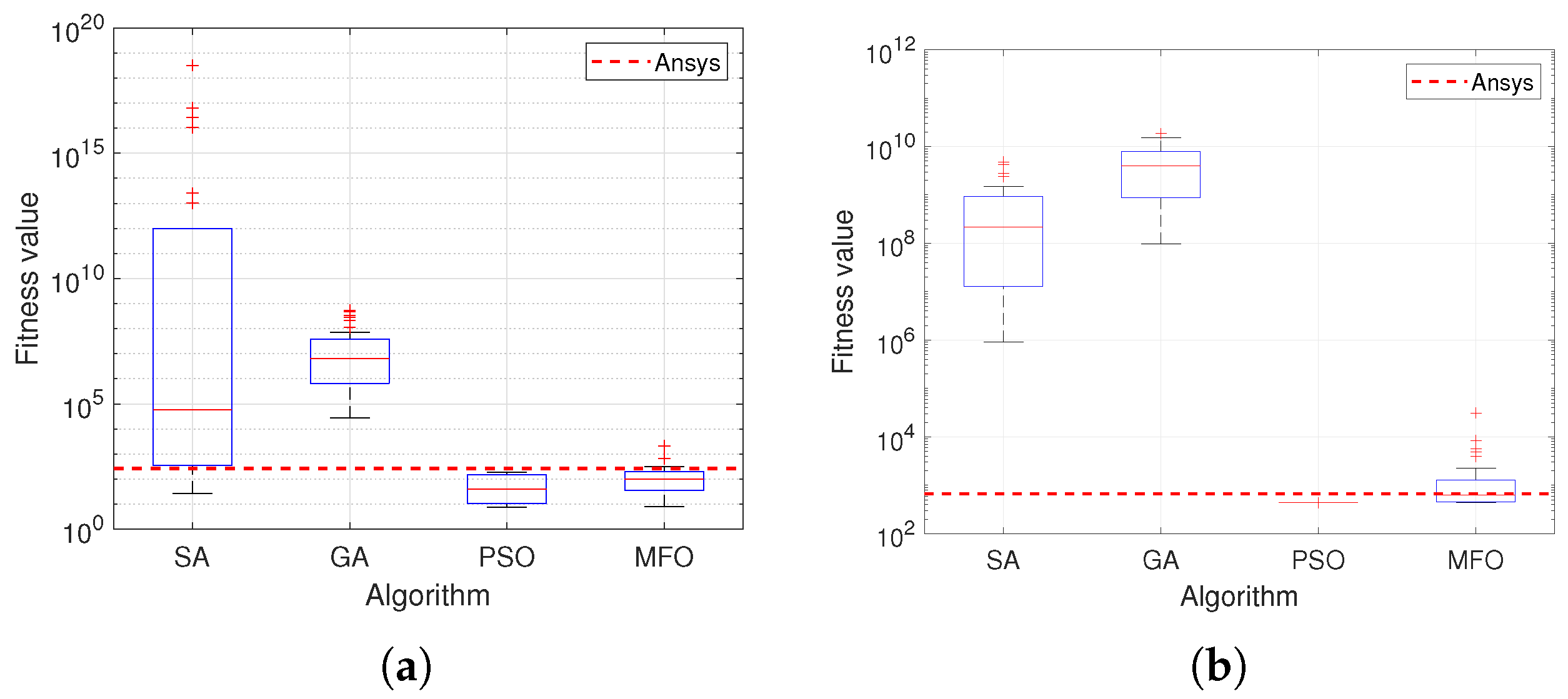 It is worth noting that although the Sorotoki library includes built-in optimization tools, these are primarily tailored for topology optimization tasks, aiming to determine the optimal material distribution within a fixed design domain. In contrast, the present work focuses on design parameters and shape optimization, where actuator dimensions and geometric parameters are iteratively modified to enhance performance. Since the current Sorotoki framework does not yet provide direct functionality to dynamically update geometric parameters during FEA-based iterations, external meta-heuristic algorithms were coupled with the toolkit to enable this functionality.