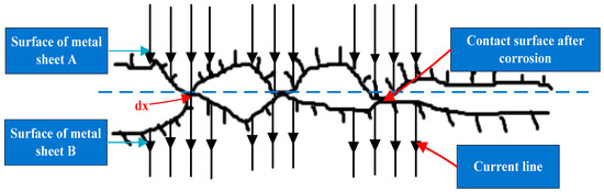 Due to the influence of the above factors, the reliability of the contacts in high-temperature environments is reduced, increasing the risk of faults occurring. To quantitatively analyze the impact of temperature rises on the reliability of low-voltage electrical contacts used in transport vehicles, a thermal equilibrium equation is established based on the surface condition of the contact layer of the bimetallic strip in Figure 2.