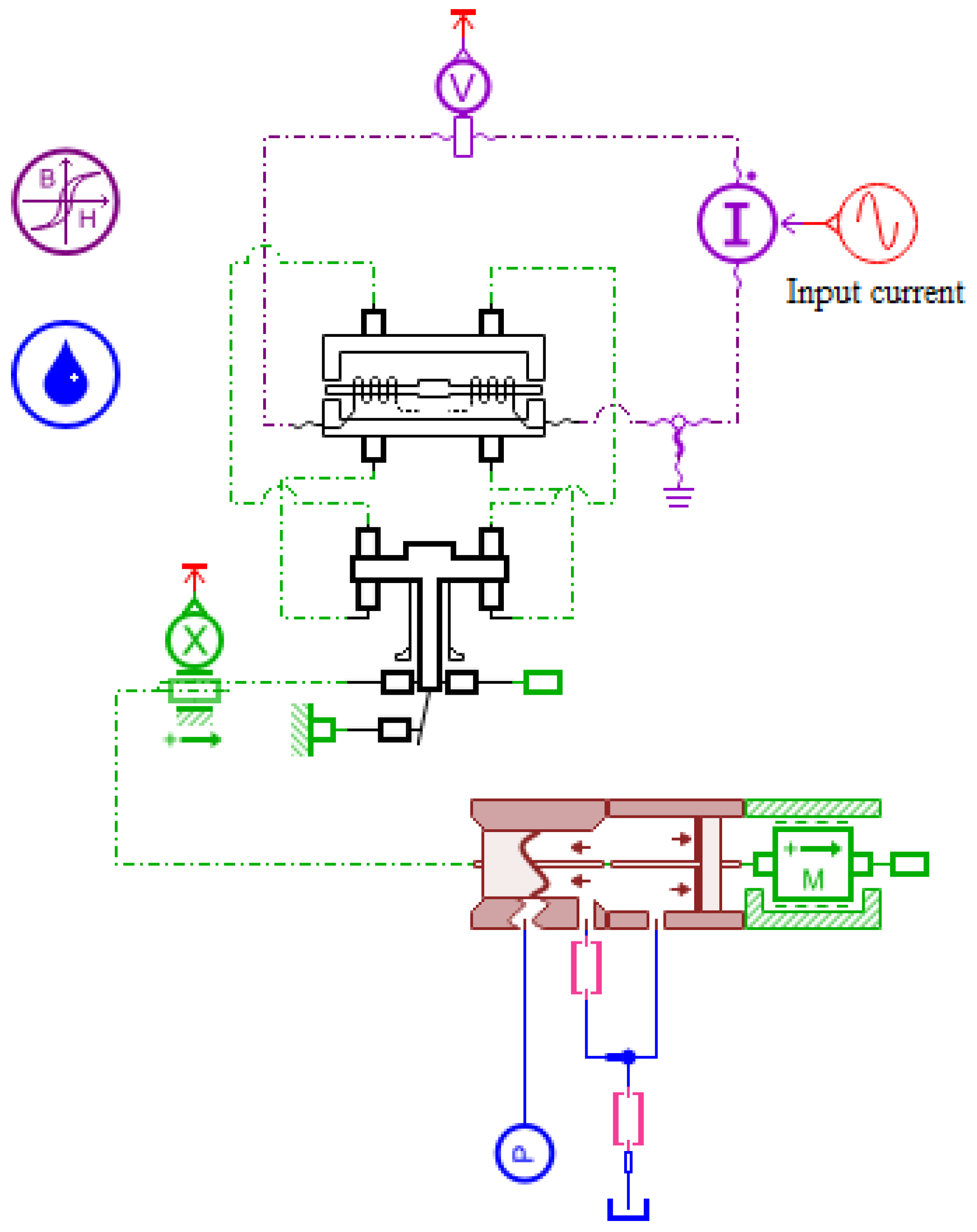 - Sharan, A.S.; Hiremath, S.S.; Venkatesha, C.S.; Venkatesha, C.S. Investigation on the critical parameters affecting the working design dynamics of a torque motor employed in an electro-hydraulic servovalve. Simulation 2019, 95, 31–49. [Google Scholar]