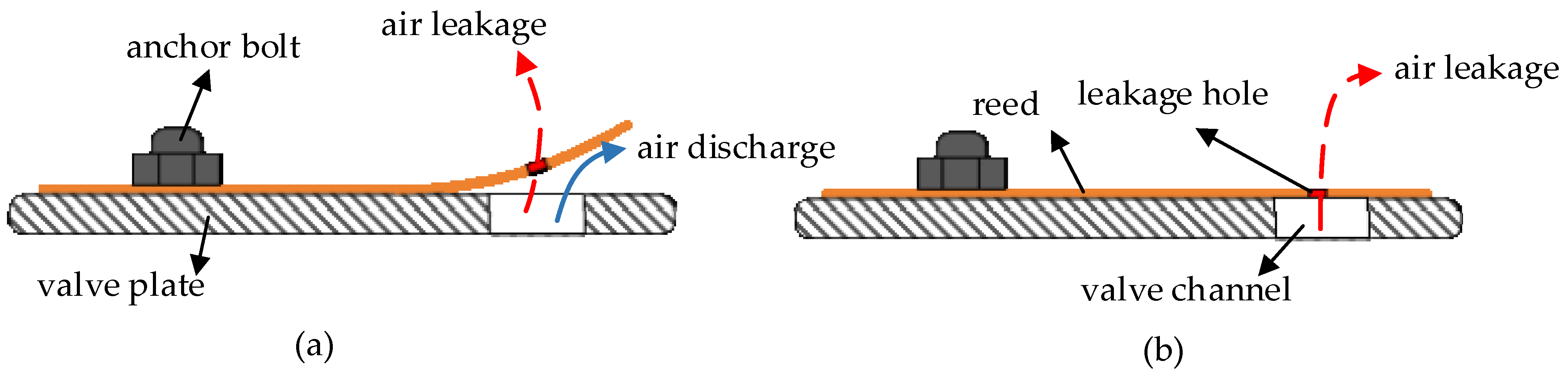 - Silva, L.R.; Deschamps, C.J. Modeling of gas leakage through compressor valves. Int. J. Refrig. 2015, 53, 195–205. [Google Scholar] [CrossRef]