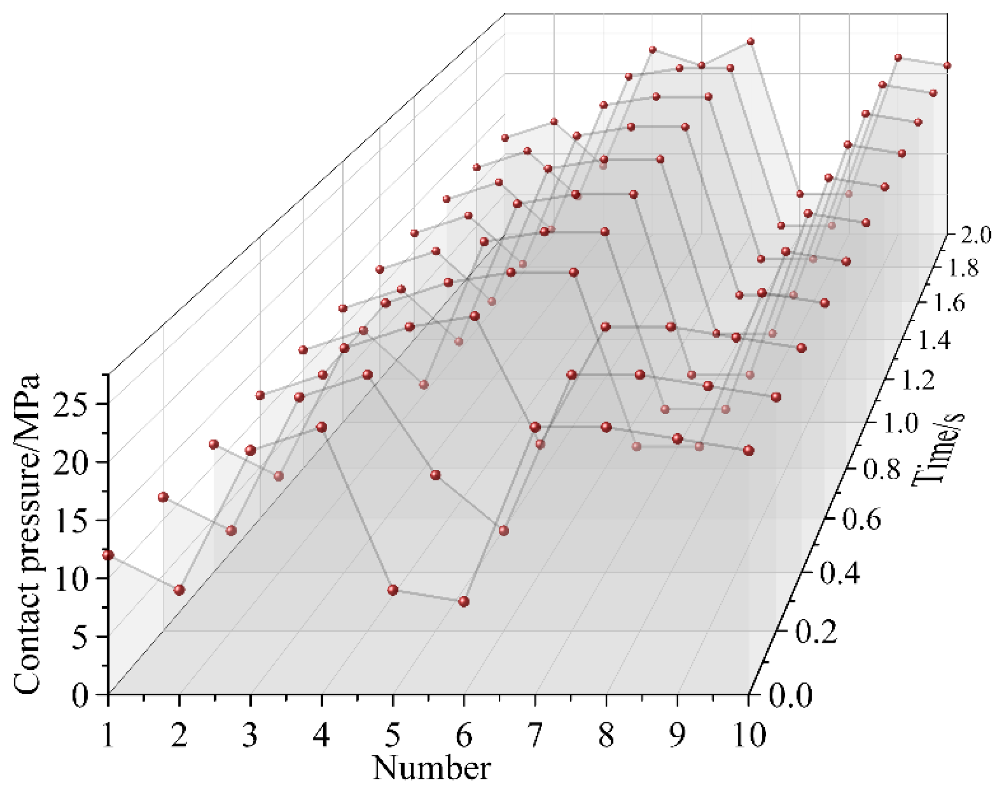Figure 7). The average contact pressure time-sequence distribution of each protrusion during the simulation (0–2 s) is shown in