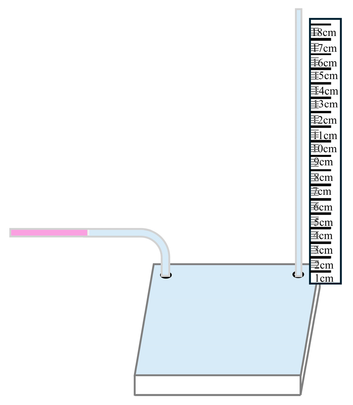 Section 3.1, mainly using a vertical ruler measurement method to measure the back pressure height of the micropump, as shown in