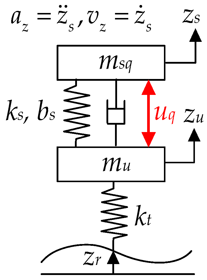 | uq | forces generated by an actuator at suspension in the quarter-model (N) |