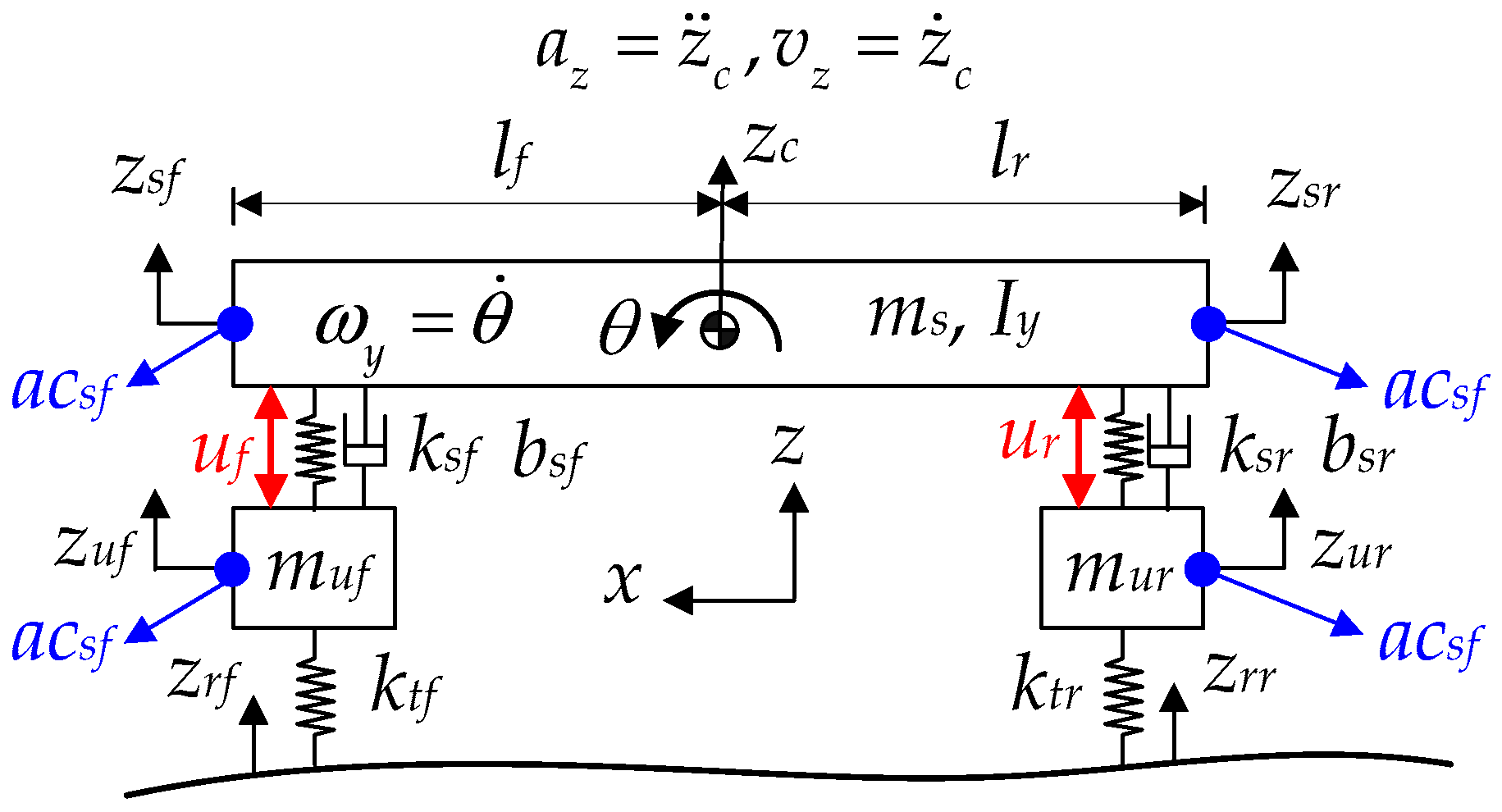 | uf, ur | forces generated by an actuator at suspensions in the half-car model (N) |
