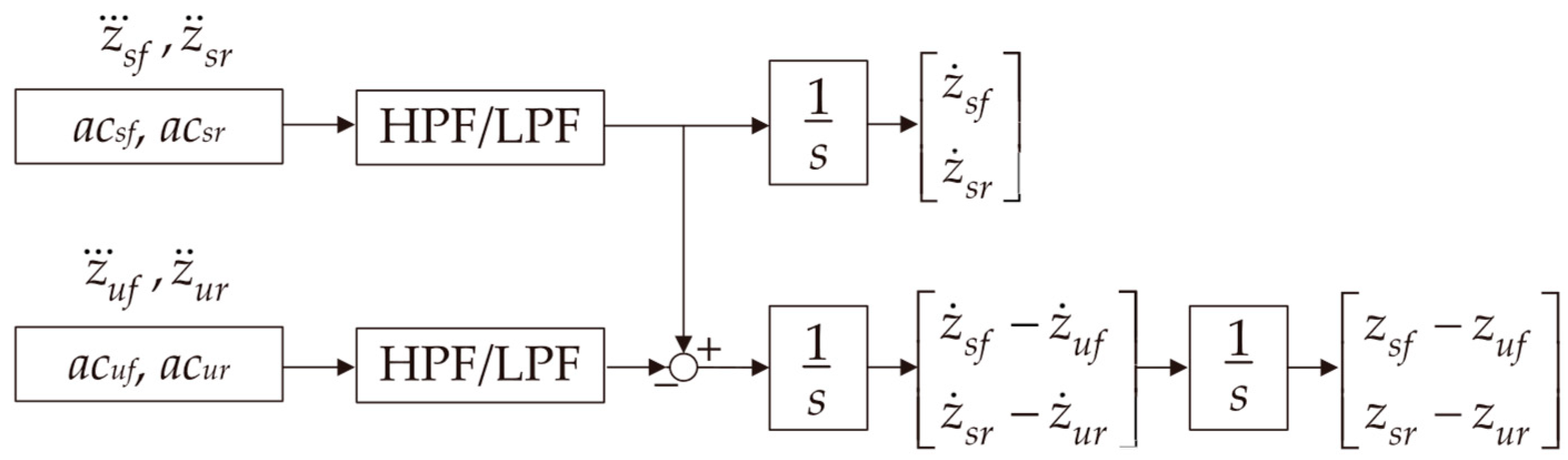 - Kim, J.; Yim, S. Design of static output feedback suspension controllers for ride comfort improvement and motion sickness reduction. Processes 2024, 12, 968. [Google Scholar] [CrossRef]
