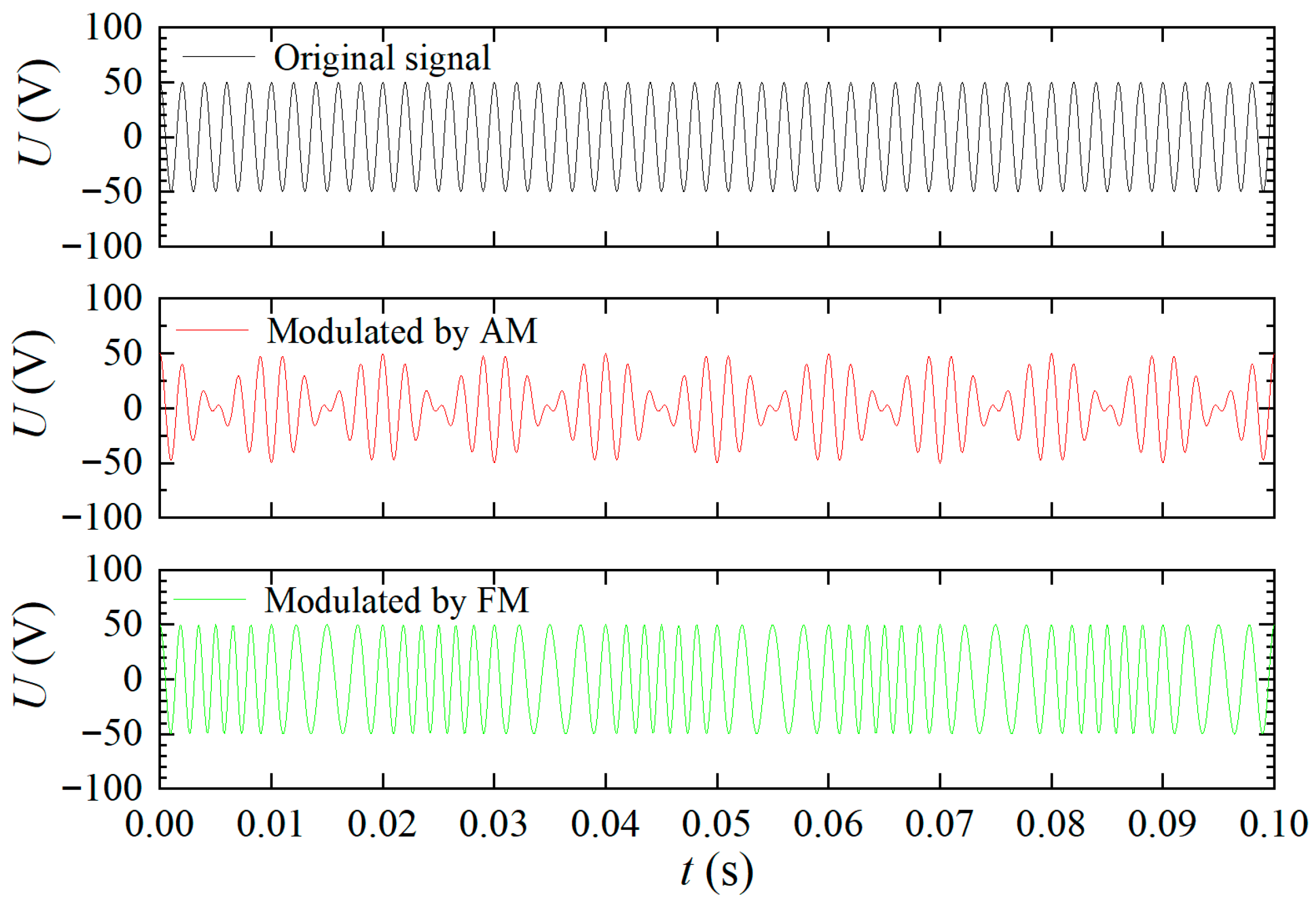 | fFM | Modulation frequency for frequency modulation | Voltage of the frequency-modulated signal | |