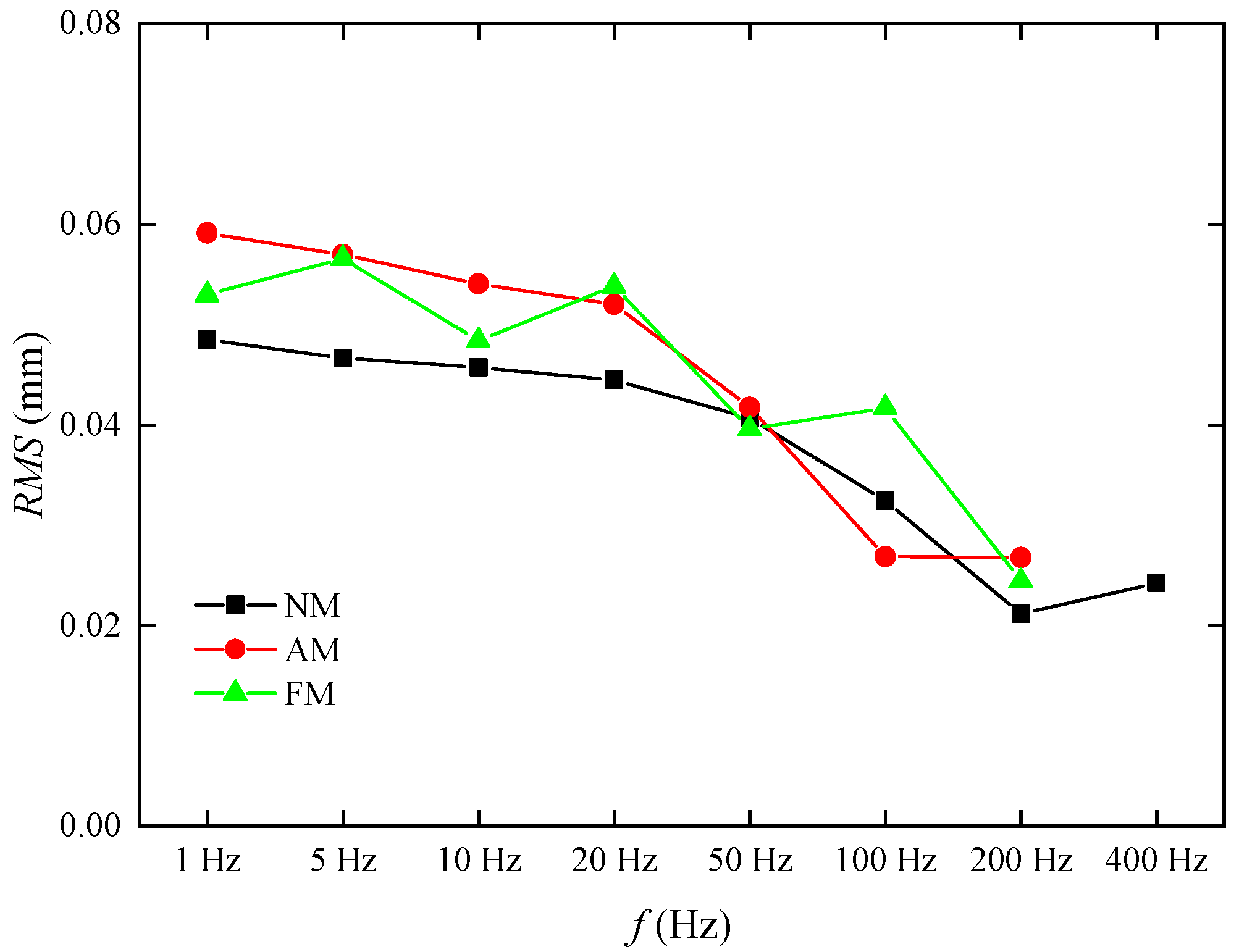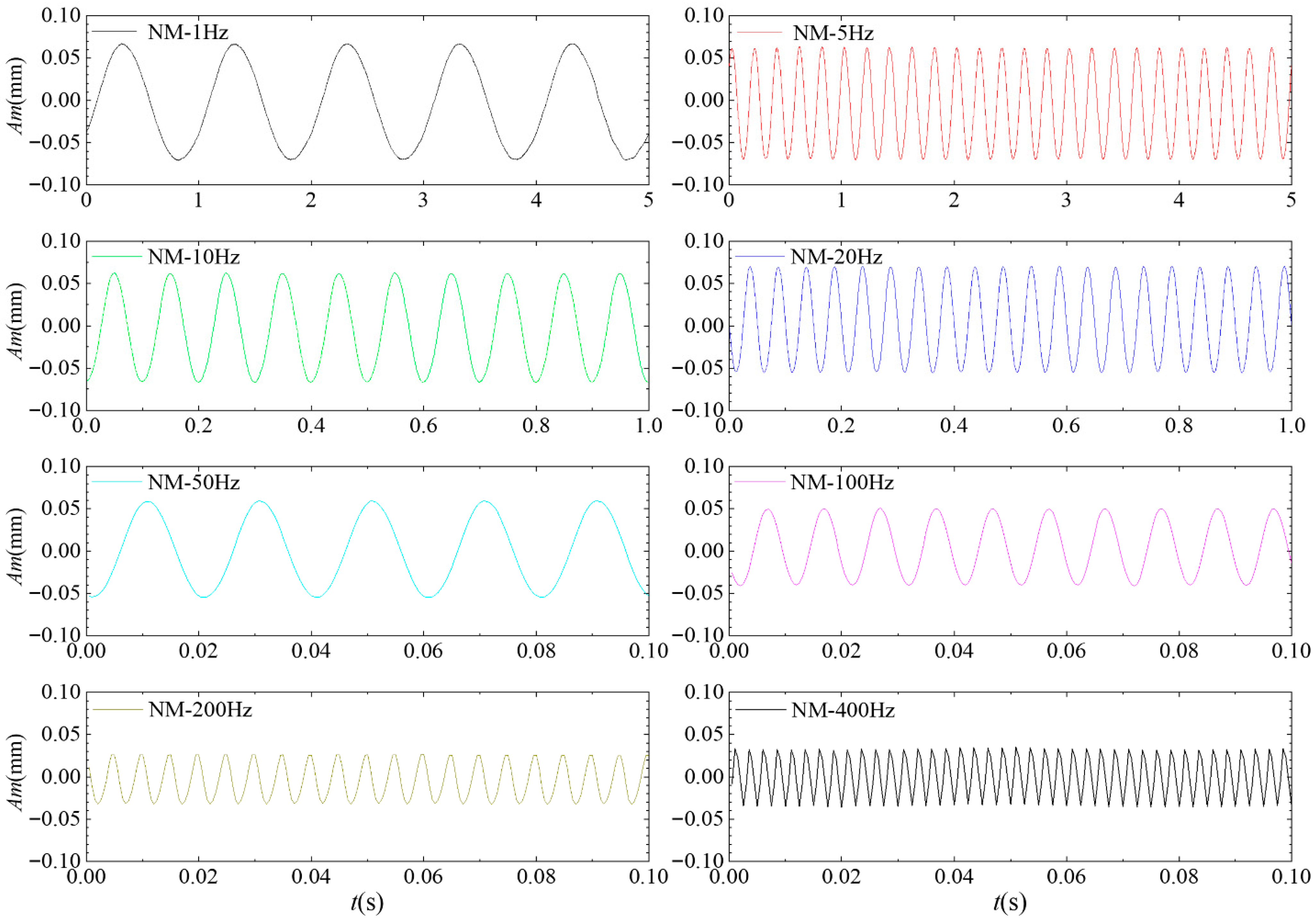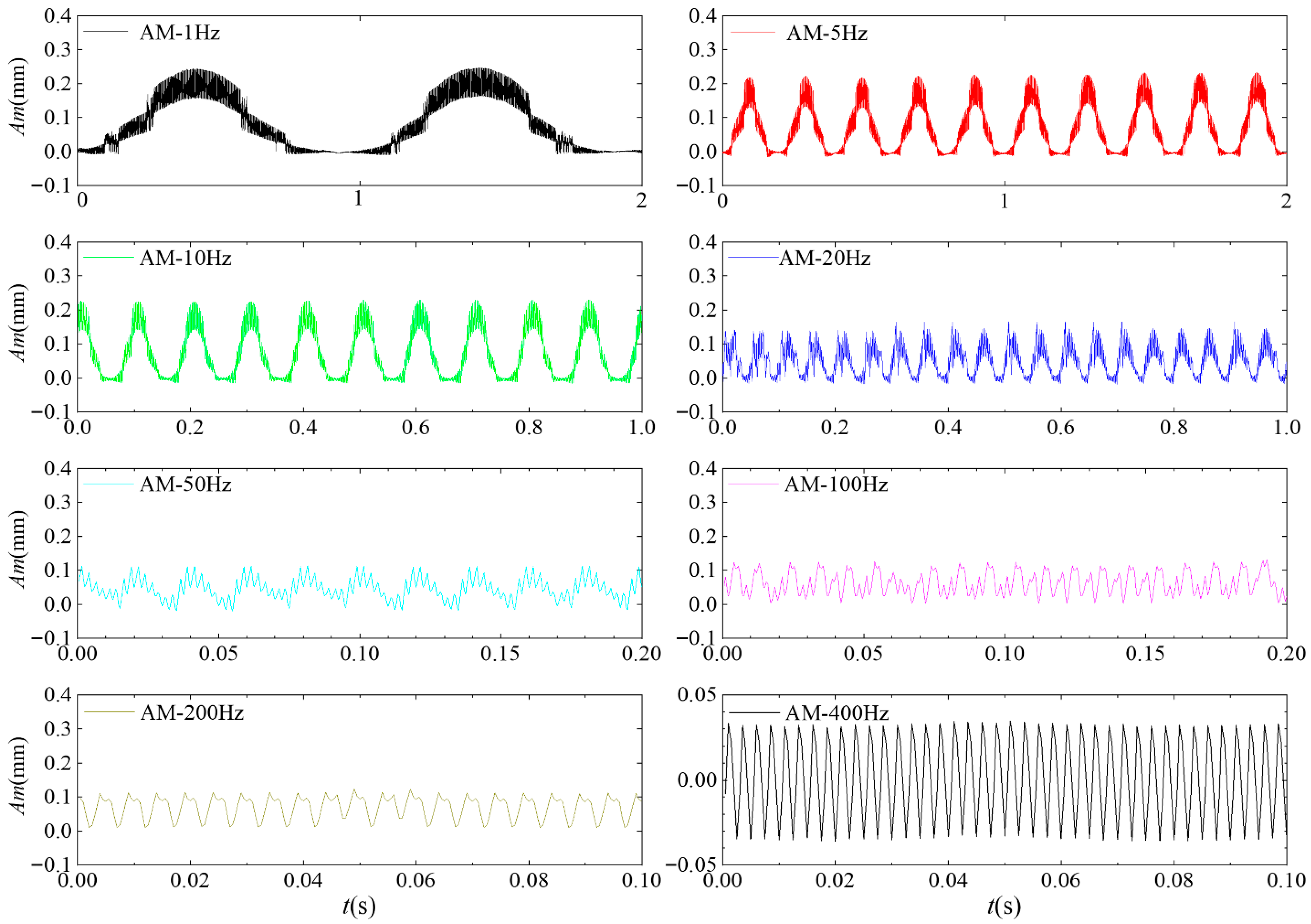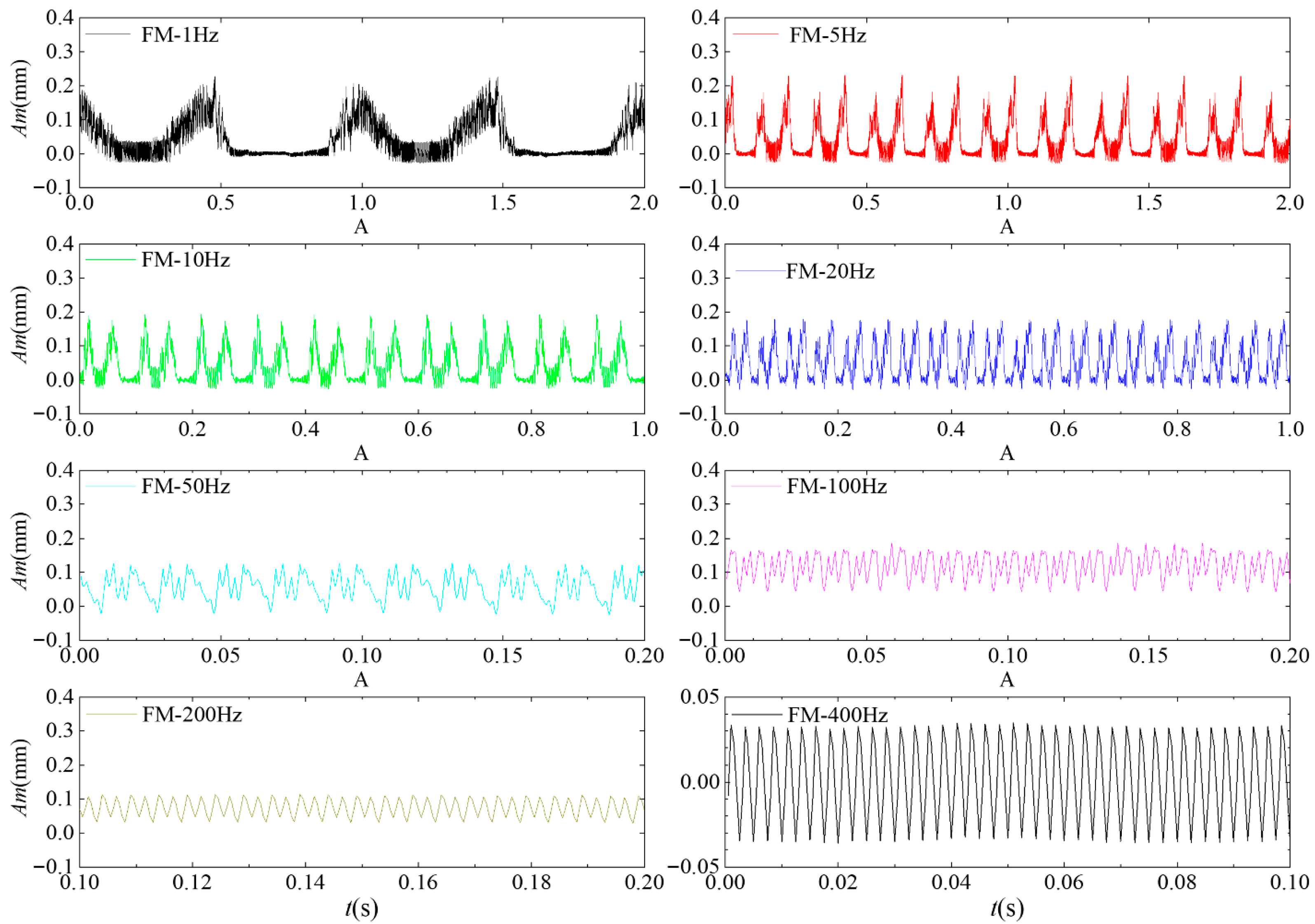 | Vibration amplitude | ±210 V | 1 Hz, 5 Hz, 10 Hz, 20 Hz, 50 Hz, 100 Hz, 200 Hz, 300 Hz, 400 Hz, 500 Hz, 600 Hz, 700 Hz, 800 Hz | No modulation |