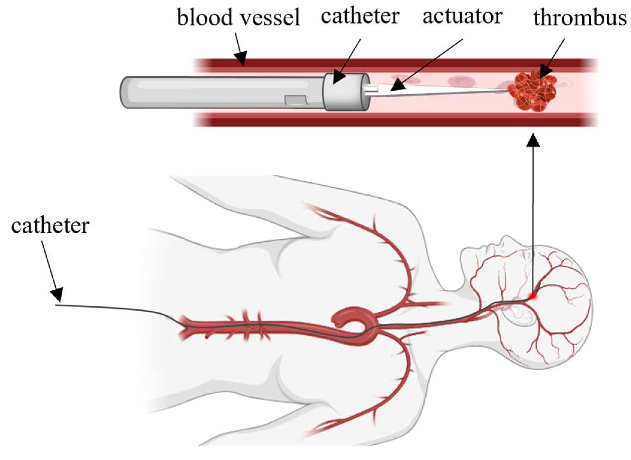 - Ajoudanian, M.; Jiang, Z.; Morita, M.; Asme. Analysis and modeling of vibratable end-effector angle of catheter for thrombus dissolution. In Proceedings of the ASME Conference on Smart Materials Adaptive Structures and Intelligent Systems, Philadelphia, America, 28 September–1 October 2010. [Google Scholar]