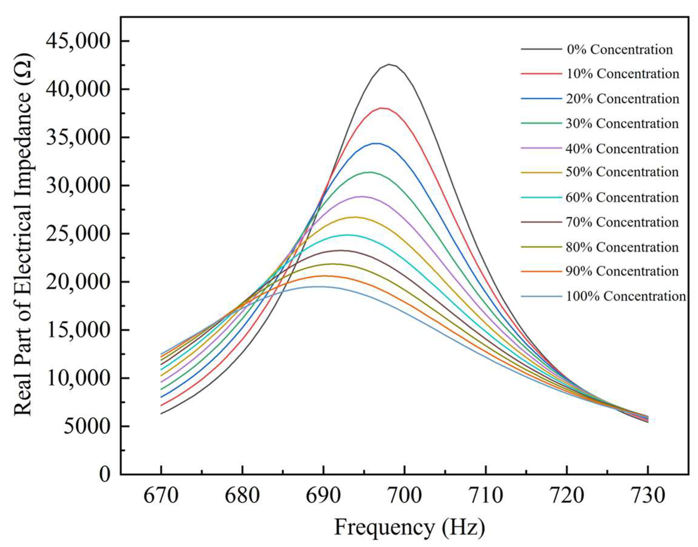 | Concentration of Thrombolytic Solution (%) | Response Frequency (Hz) | ) |