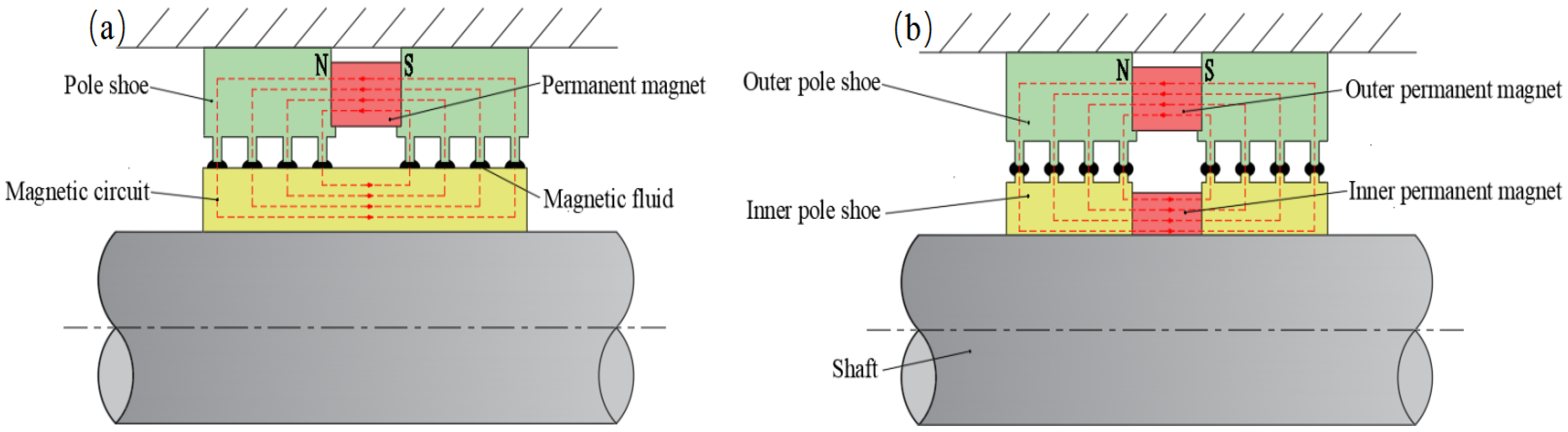 Chicago/Turabian StyleQing, Jie, Zhenggui Li, Chuanshi Cheng, Changrong Shen, and Lin Cai. 2025. "The Structural Design and Pressure Characteristics Analysis of a Magnetic Fluid Sealing Device with Dual Magnetic Sources" Actuators 14, no. 11: 561. https://doi.org/10.3390/act14110561