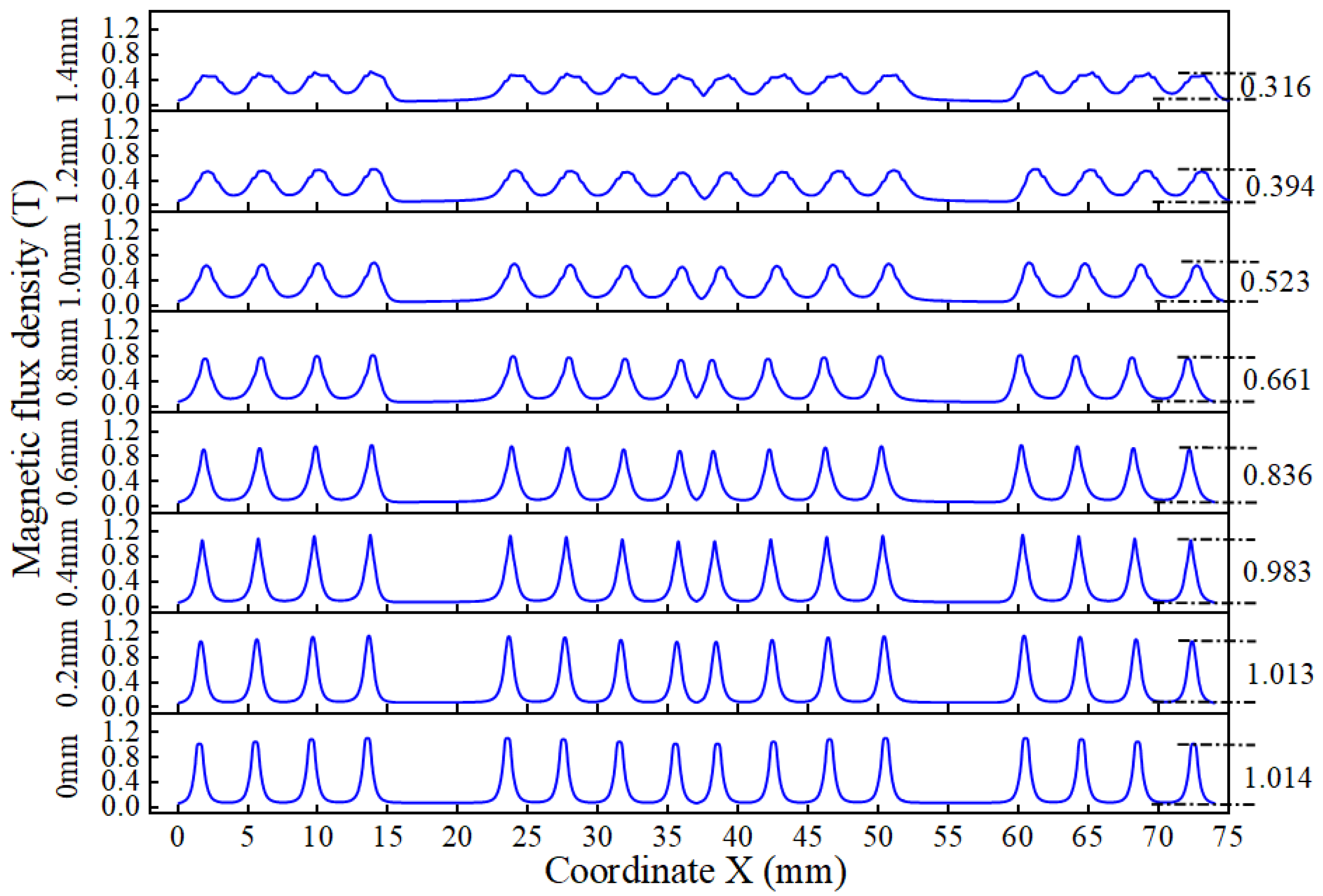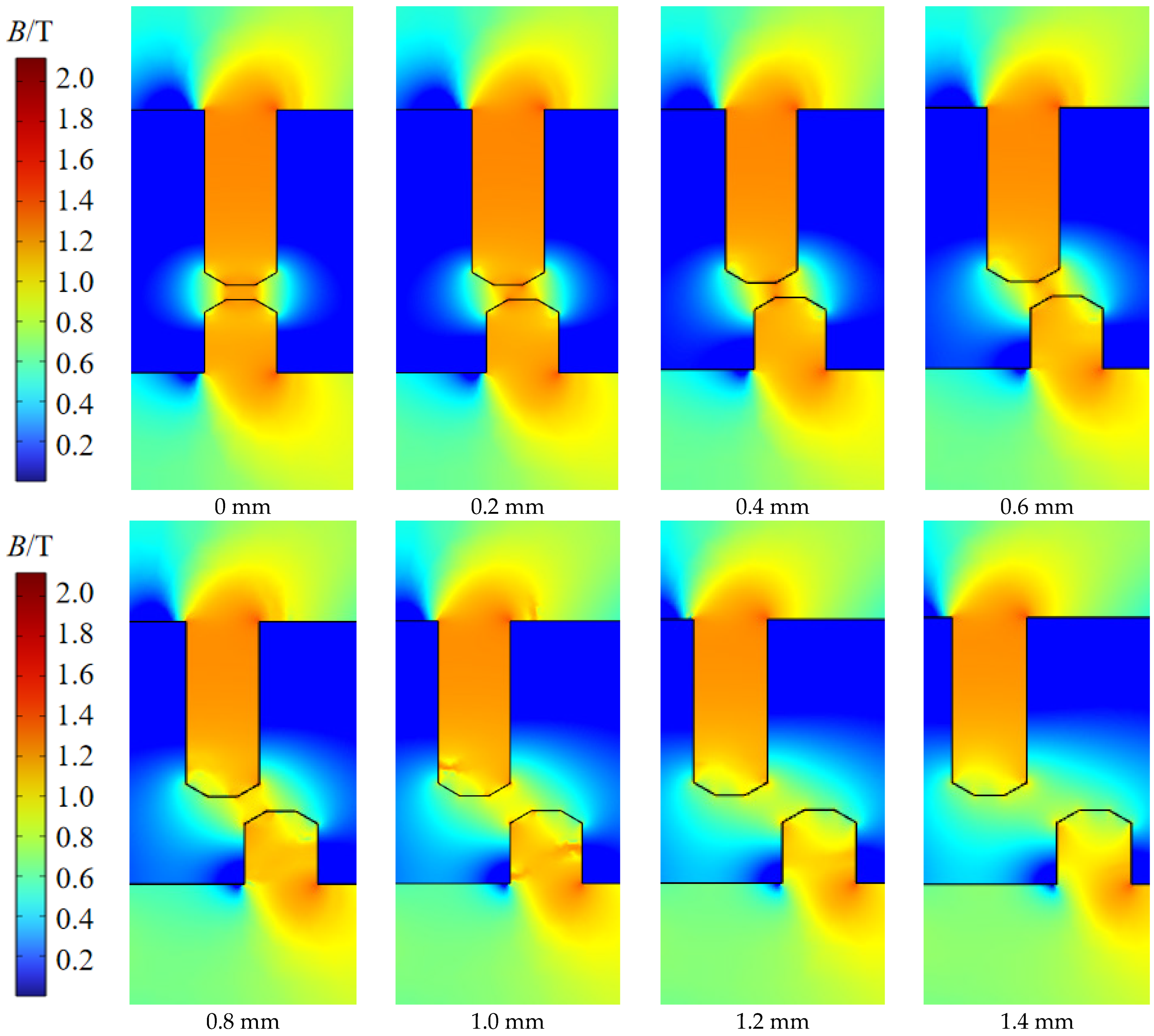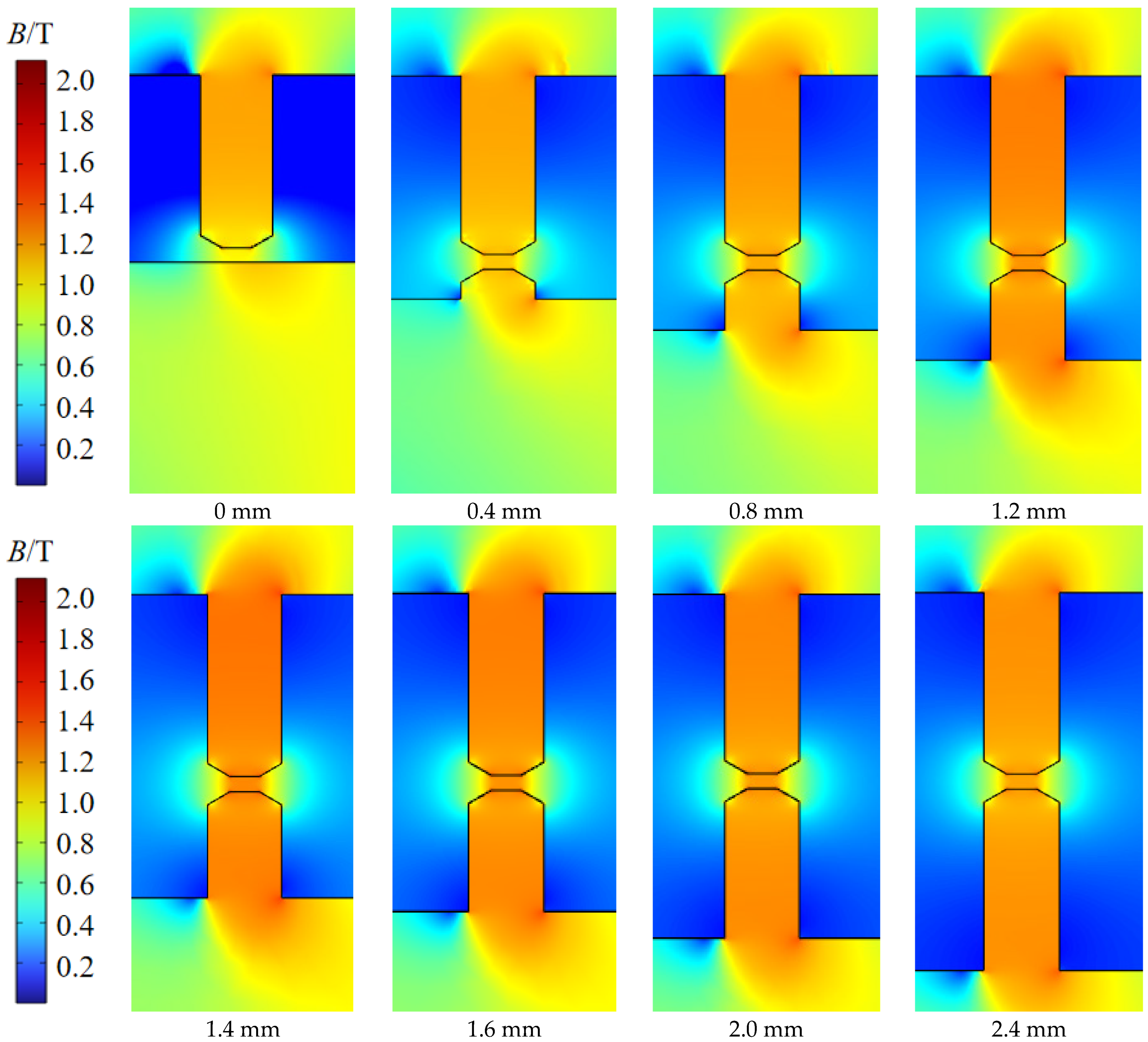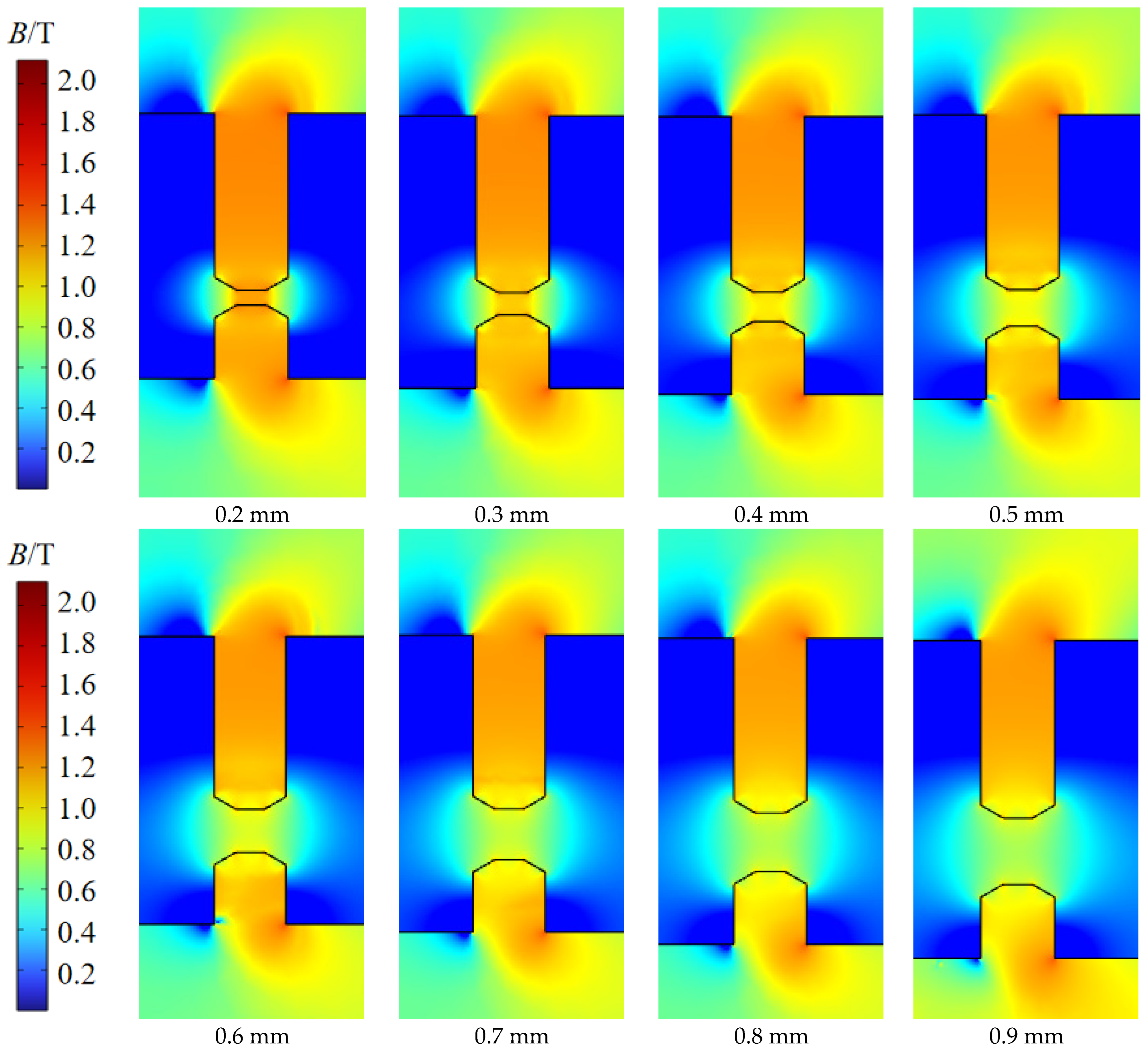| Sealing Gap c | Inner Pole Tooth Height h | Angle α | Eccentricity Distance b | Radius of Shaft r |